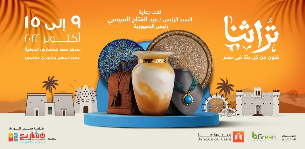 ومن المقرر أن تنطلق فعاليات المعرض يوم 9 أكتوبر المقبل وحتى 15 من الشهر ذاته بمركز مصر للمعارض الدولية، حيث يشارك نحو 1116 عارض من مختلف محافظات الجمهورية، ويضم عدد كبير من المنتجات التراثية واليدوية والفنية لأصحاب المشروعات الصغيرة في أكثر من 30 قطاع تراثي تضم المنتجات الفنية والإبداعية للآلاف من الفنانين والحرفيين المصريين المهرة.