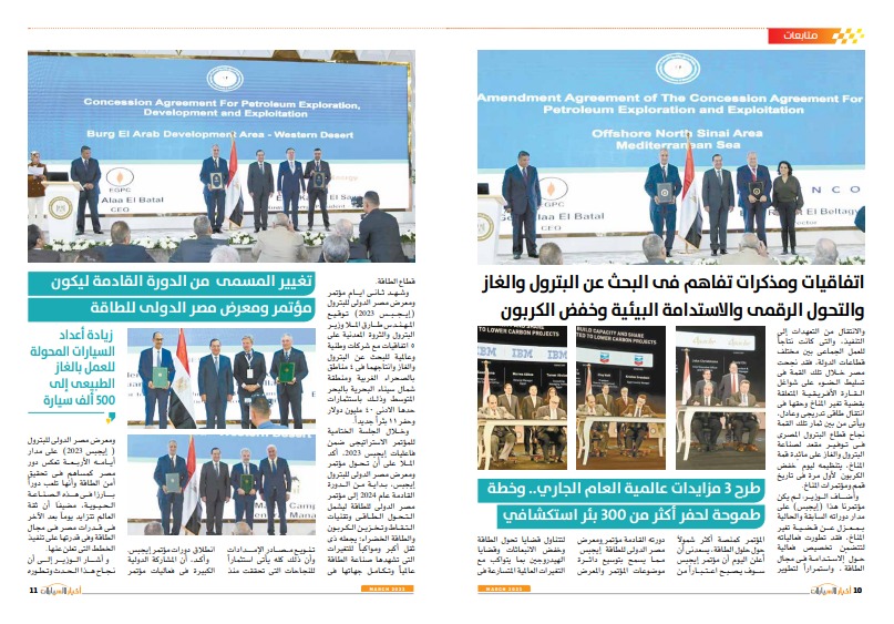 ويضم العدد تغطية موسعة للنجاح الكبير الذي حققته الدورة السادسة من مؤتمر ومعرض مصر الدولي للبترول ايجيبس 2023 بمشاركة أكثر من 32 ألف مشارك و41 شركة عالمية و260 متحدثا و12 جناحا دوليا حيث تم الإعلان عن توصيل الغاز لأكثر من 200 قرية ضمن مبادرة حياة كريمة و18.2 مليار دولار صادرات بترولية وأكثر من 3 مليارات فائضا في الميزان التجاري.ونشاط الوزير المتألق طارق الملا وزير البترول والثروة المعدنية ، ولقاءاته مع خبراء ورؤساء شركات الغاز والنجاحات المتعددة لقطاع البترول.
