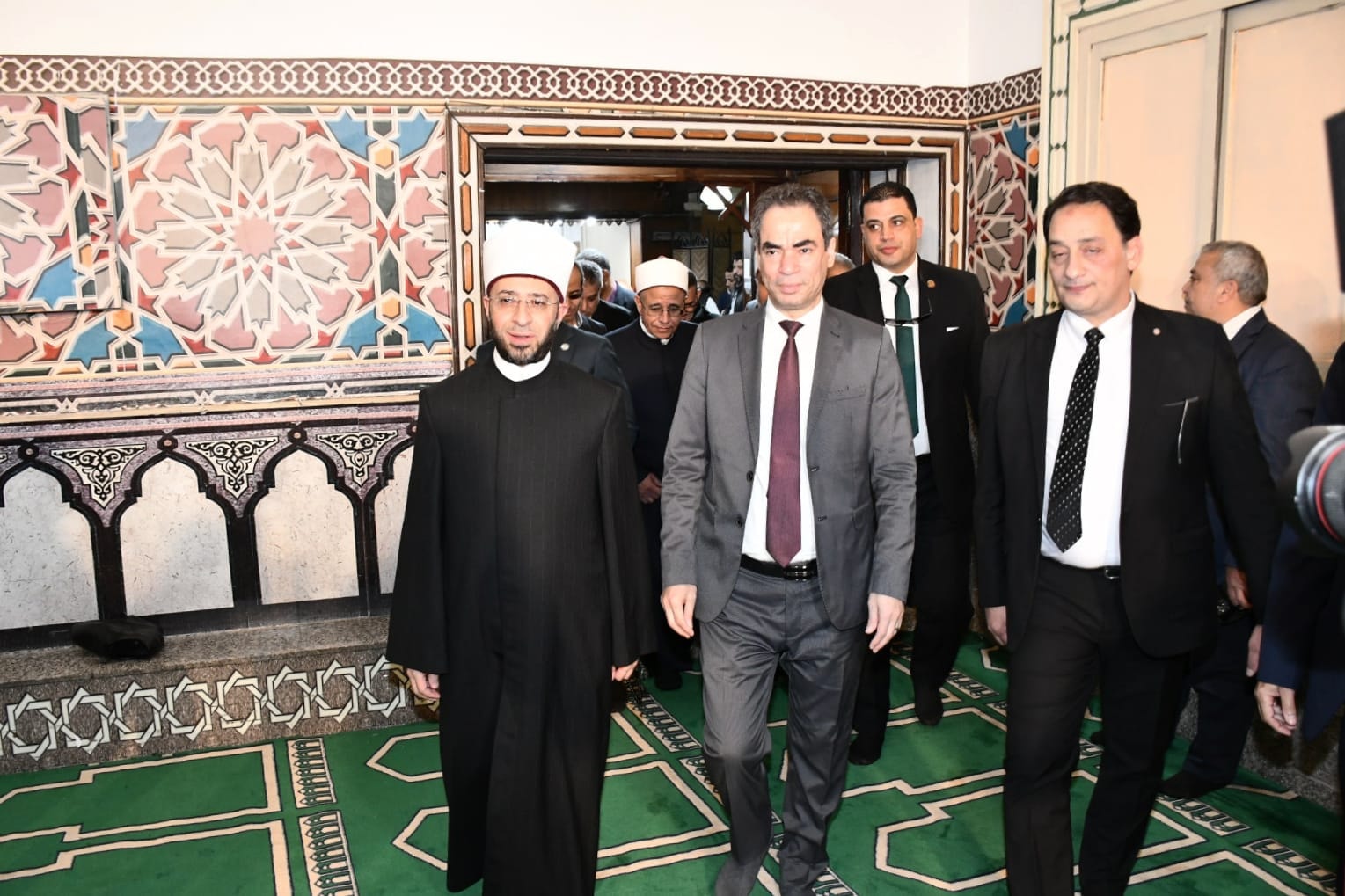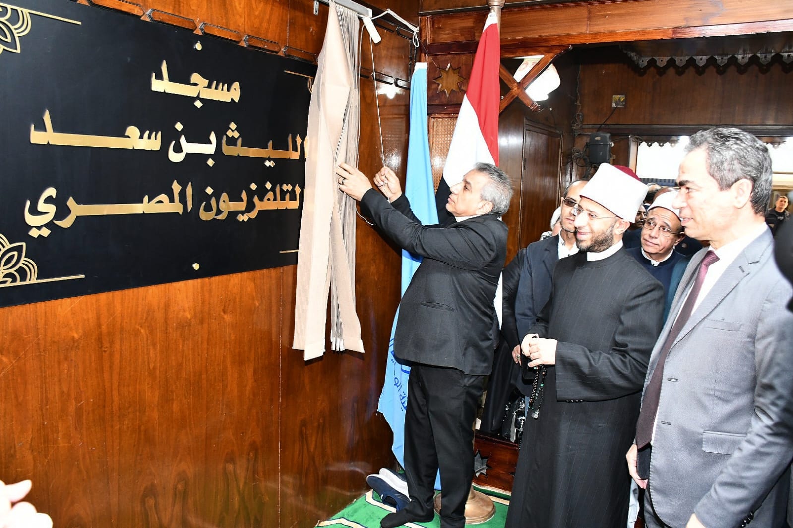 وزير الأوقاف ورئيس الوطنية للإعلام يحتفلان بإطلاق اسم الإمام الليث بن سعد على مسجد ماسبيرو