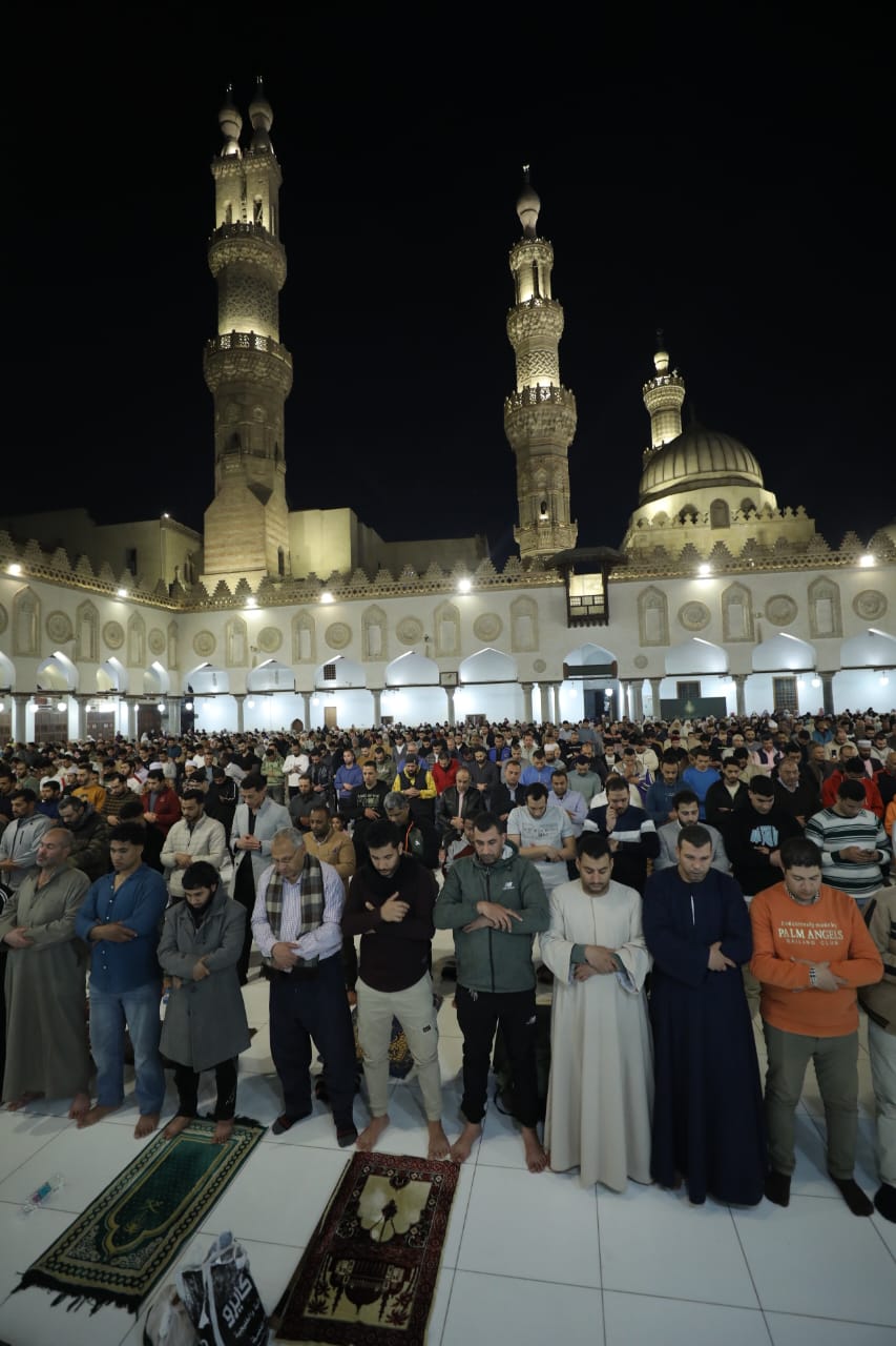 أدى آلاف المصلين من أنحاء الجمهورية ومن جميع دول العالم صلاتي العشاء والتراويح في رحاب الجامع الأزهر الطاهرة، مصطفين بقلوب تناجي الخالق وأرواح ترفعُ أكف الضراعة إليه تعالى أن يجعل من هذه الأيام المباركة رحمة بهم، وغفرانا لهم، وعتقا لهم من النار.