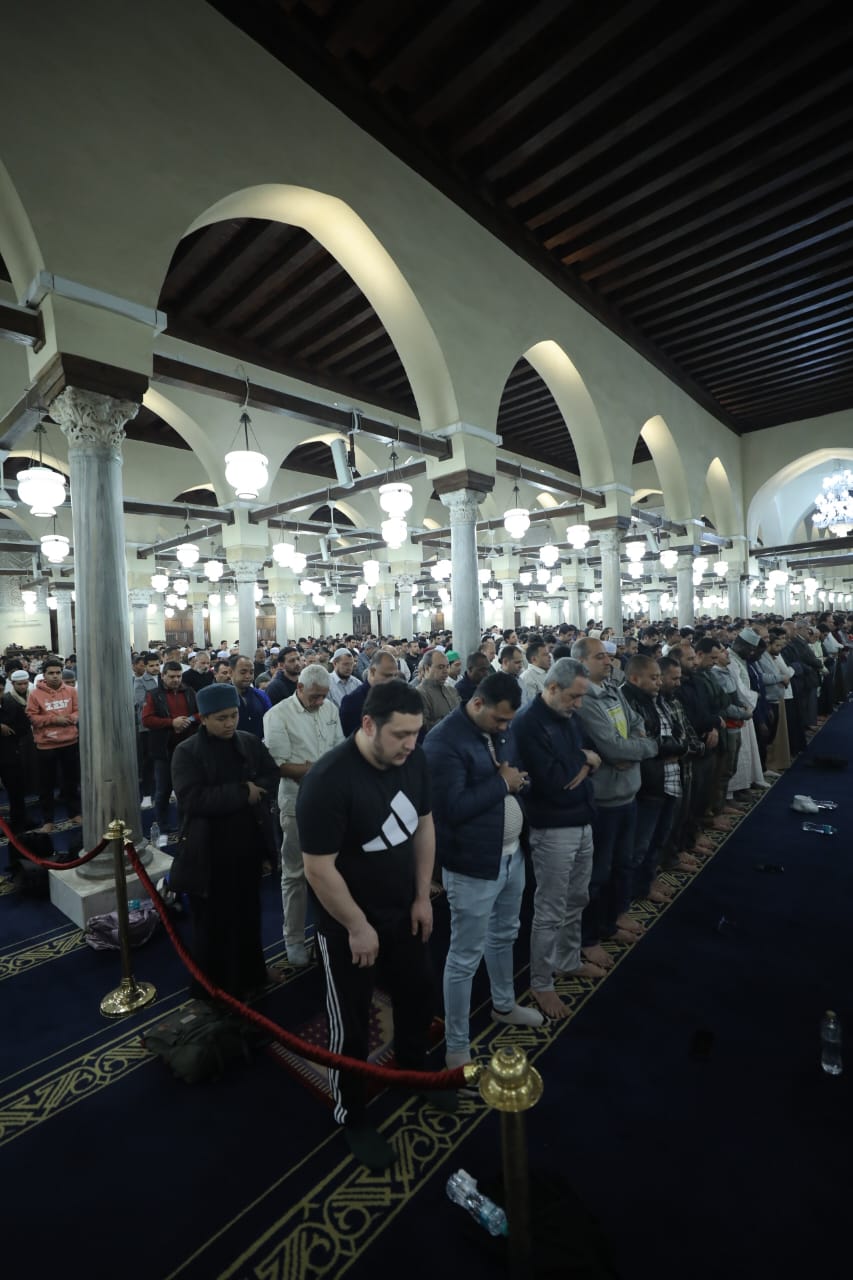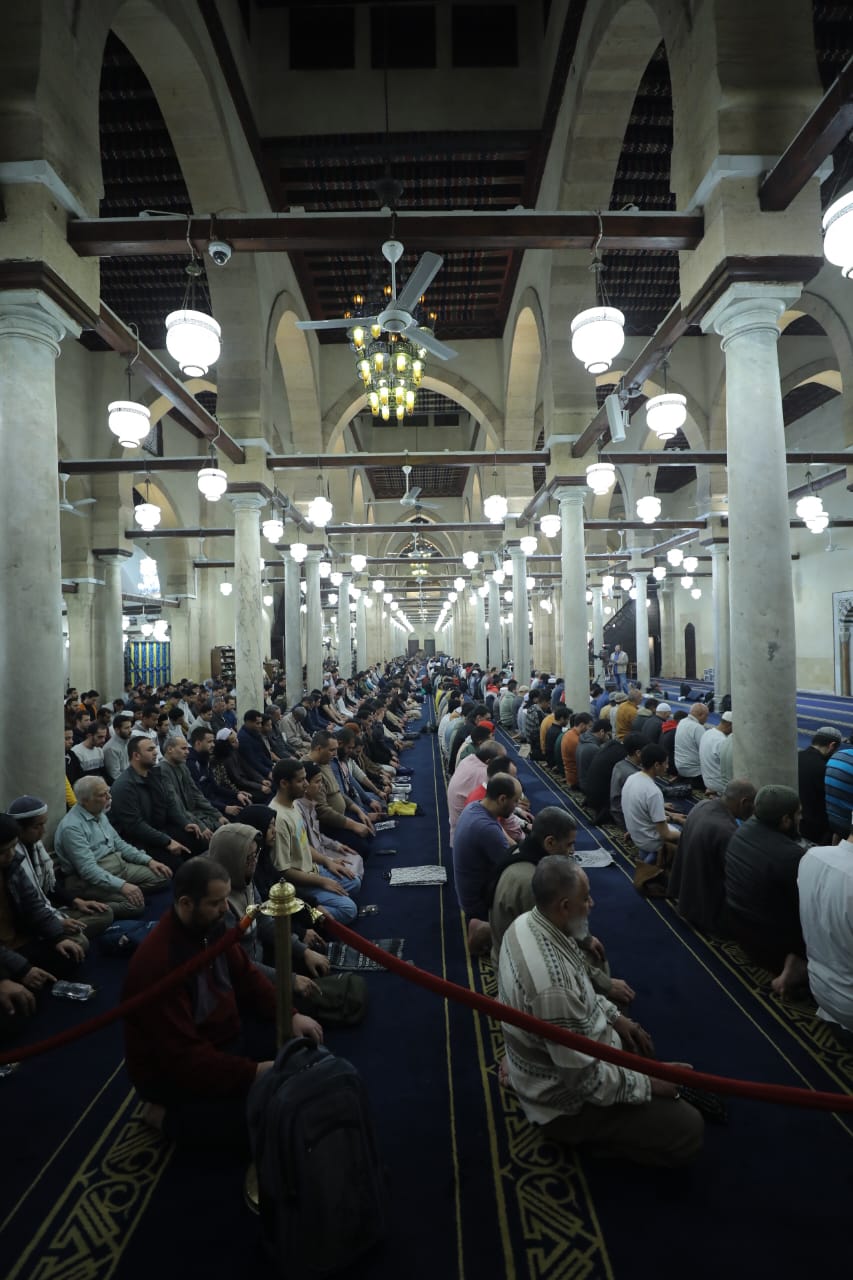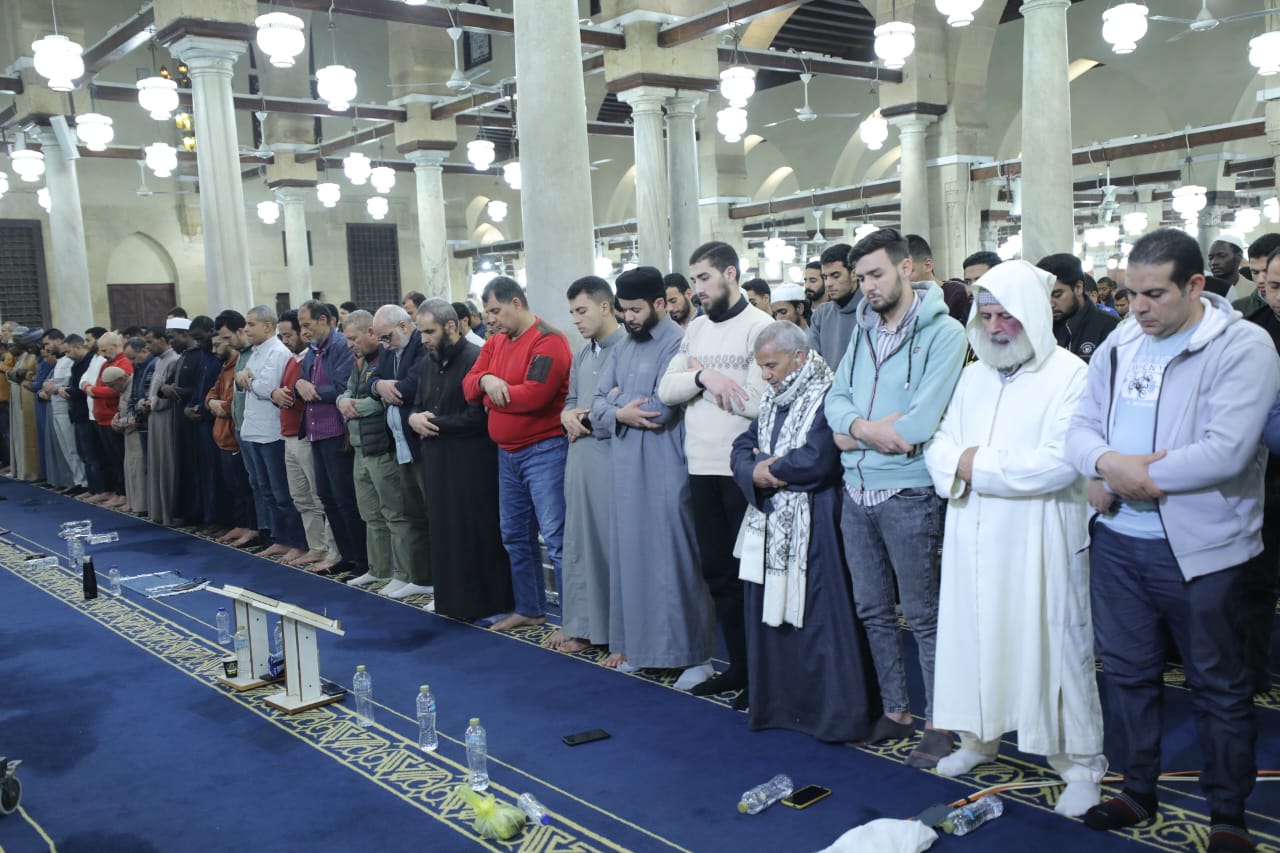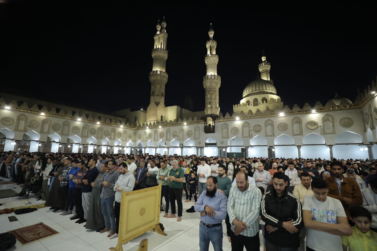 آلاف المصلين من مصر والعالم يؤدون صلاتي العشاء والتراويح بالجامع الأزهر.. صور