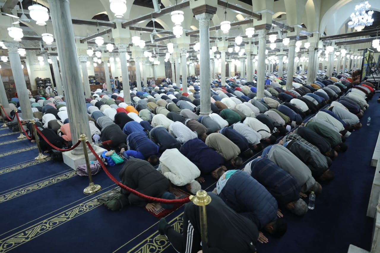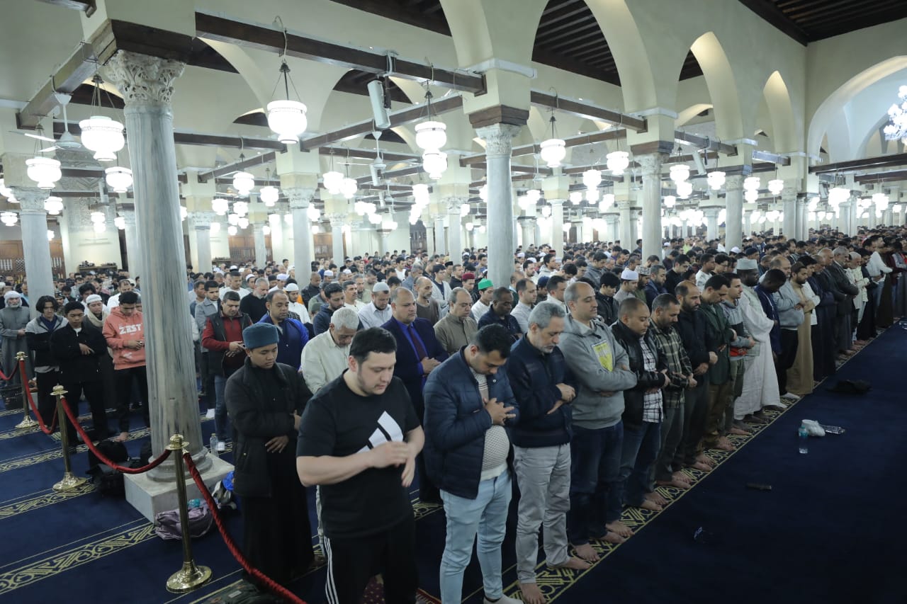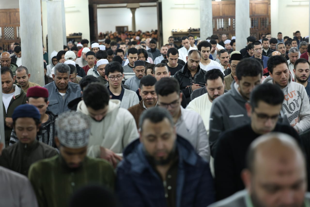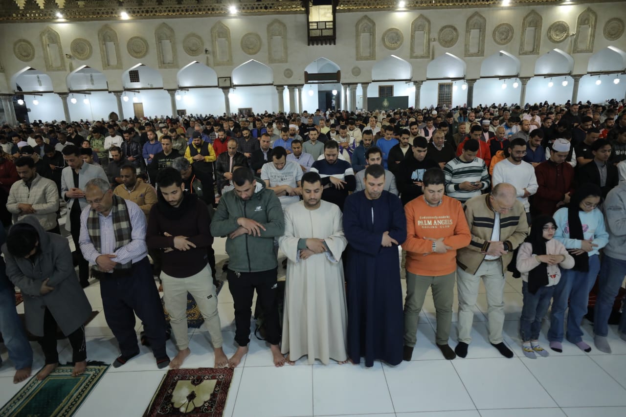 آلاف المصلين من مصر والعالم يؤدون صلاتي العشاء والتراويح بالجامع الأزهر.. صور