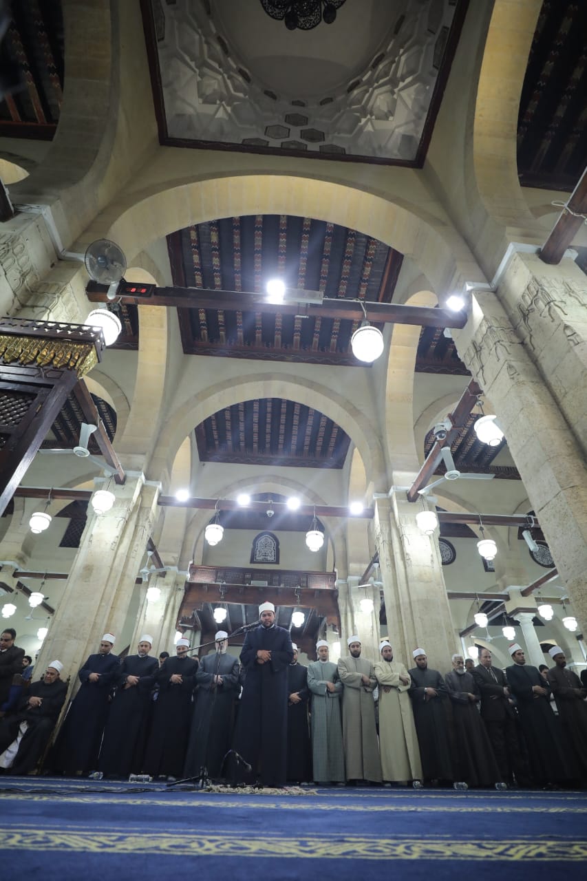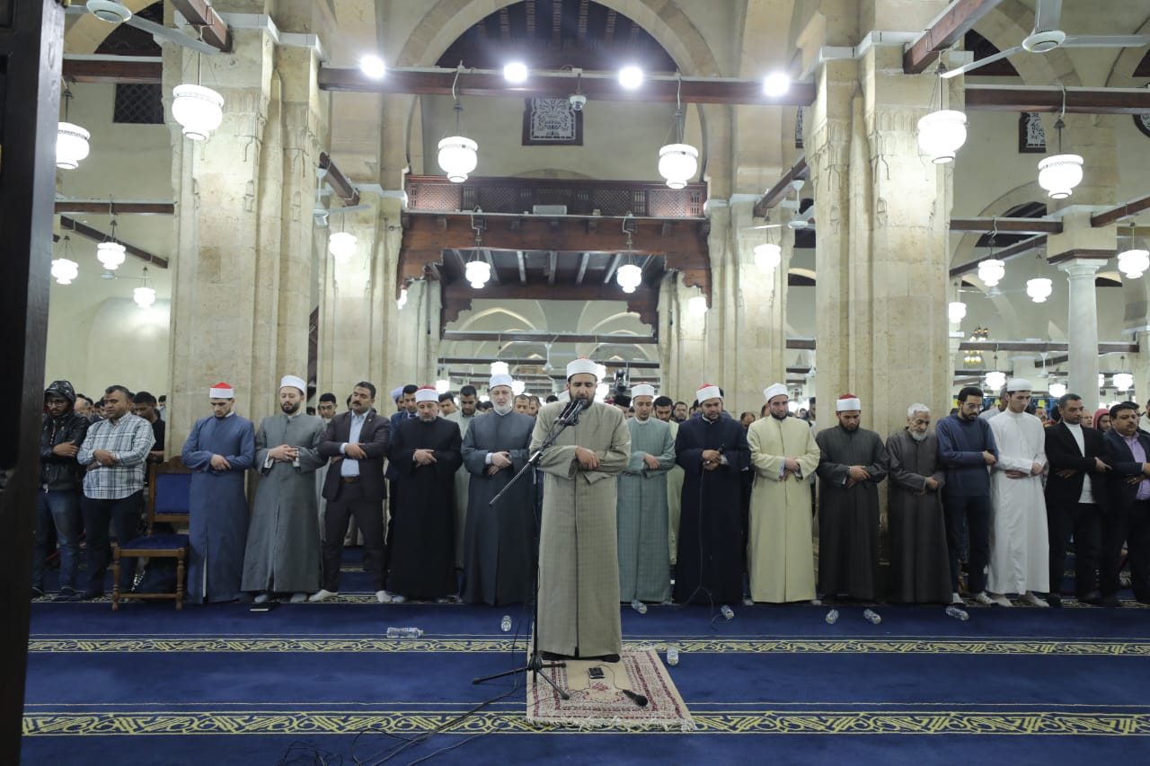 وأقيمت صلاة التراويح من سورة الحجر والنحل، ويؤم المصلين فيها الشيخ رضا رمضان عبد الجواد، مدرس القراءات بمنطقة المنيا الأزهرية، قارئا برواية الإمام أبو الحارث عن الإمام الكسائي، والشيخ أحمد سعد العجمي، الواعظ بمنطقة وعظ الغربية، قارئًا برواية الإمام خلف عن الإمام حمزة الكوفي، والشيخ محمد فوزي البربري، القارئ والإمام بالجامع الأزهر، قارئًا برواية الإمام ابن وردان عن الإمام جعفر المدني، وتختتم الصلاة بركعتي الشفع وركعة الوتر، ويؤم المصلين فيها الشيخ شعبان سيد حسين، ويؤم المصلين في صلاة الفجر الشيخ محمد فوزي البربري، القارئ والإمام بالجامع الأزهر.