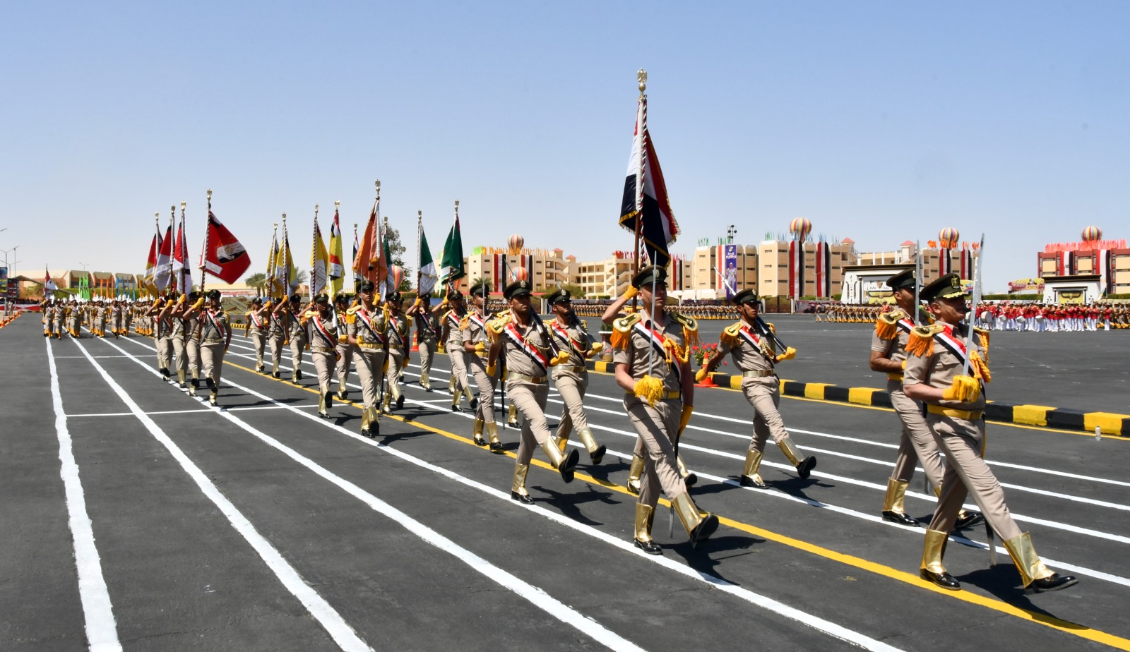واختتمت العروض بالعرض العسكرى بمشاركة مجموعات من طلبة الكلية يتقدمهم حملة الأعلام