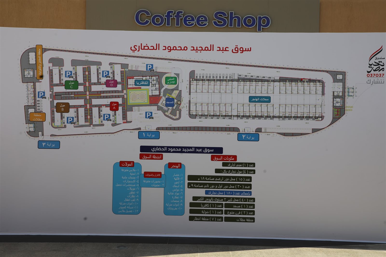 وأضاف محافظ القاهرة أن سوق عبد المجيد محمود مقام على مساحة ٦.٨ فدان، ويضم ٤ مولات كل مول به ٤٥ محلًا بإجمالي ١٨٠ محلًا بمساحات مختلفة لبيع الملابس، والأحذية ، والمنتجات الجلدية، والعطور، ومستحضرات التجميل، ولعب الأطفال، وصيانة الكمبيوتر ، والاكسسوارات، وتفصيل الملابس، بالإضافة إلى هنجر لبيع الأسماك، واللحوم، والدواجن ، والخضروات، والبيض والفاكهة، والمواد الغذائية، والمفروشات، والأدوات المنزلية، والمجمدات ، والمشويات، والمخبوزات المتنوعة، كما يضم السوق مبنى إداري، ومسجد، وكافيتريا، ومنطقة مظلات، و٧ مناطق انتظار ، وشواية ، و٢ فرن.