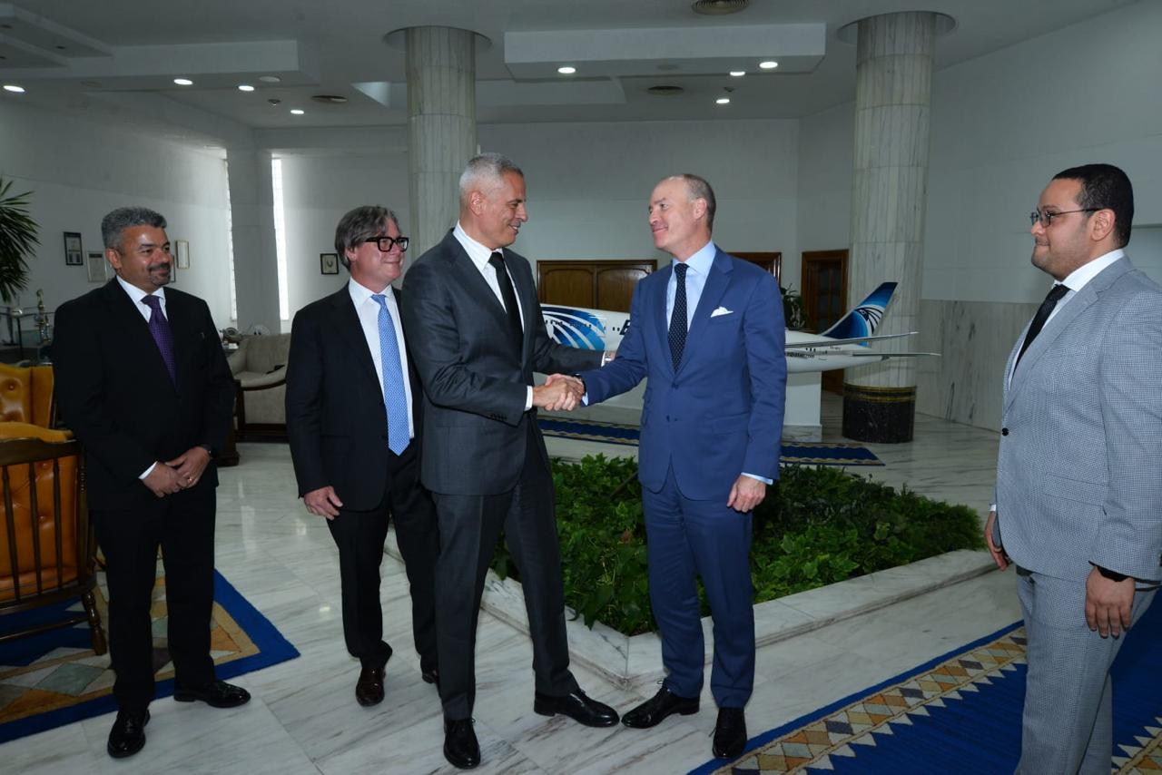 كما تم استعراض الفرص المستقبلية خلال الفترة المقبلة لدراستها بما يتوافق مع خطة الناقل الوطني "مصر للطيران" لتطوير وتحديث أسطولها، ودعمه بأحدث الطرازات العالمية، وبما يلبي متطلبات التشغيل ويساعدها على التوسع فى شبكة خطوطها الجوية وزيادة عدد الترددات على الوجهات التى تطير إليها.