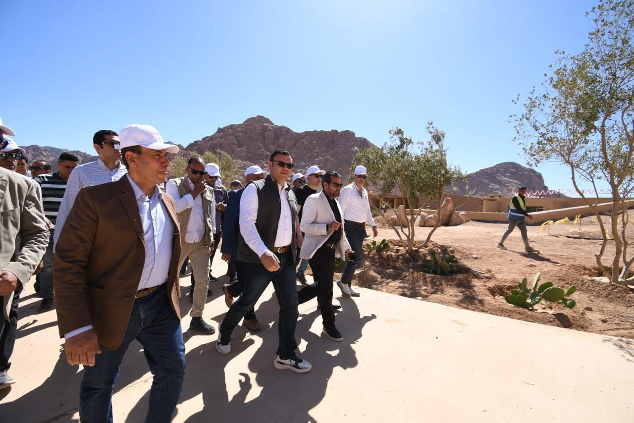 وتجول وزير الإسكان ومرافقوه بأعمال تطوير المنطقة السياحية ،وتشمل الأعمال إنشاء المنتجع السياحي الجبلي ويضم ( 4 فيلات على مساحة 520م2، و17 شاليهاً على مساحة 3660 م2، ومنطقة تجارية (بازارات) تضم 16 بازارا على مساحة 1500 م2 ) تدعم القاعدة الاقتصادية بالمدينة وتوفر متنفسًا خدمياً مع الحفاظ على الصورة البصرية الطبيعية والروحانية للمكان، وإنشاء نادٍ اجتماعي جديد على مساحة 1600م2 لتوفير متنفس خدمي رياضي ترفيهي لأهالي المدينة والزائرين، بالإضافة إلي أن مشروع المنتجع السياحي الجبلي الذي يقوم على استغلال الهضبة المميزة المطلة على المدينة بالكامل وعلى وادى الأربعين لإقامة مشروع صحى استشفائي عالمي، والاستفادة من الكوادر المحلية التي تتميز بها سانت كاترين في العلاج بالأعشاب الطبيعية.
