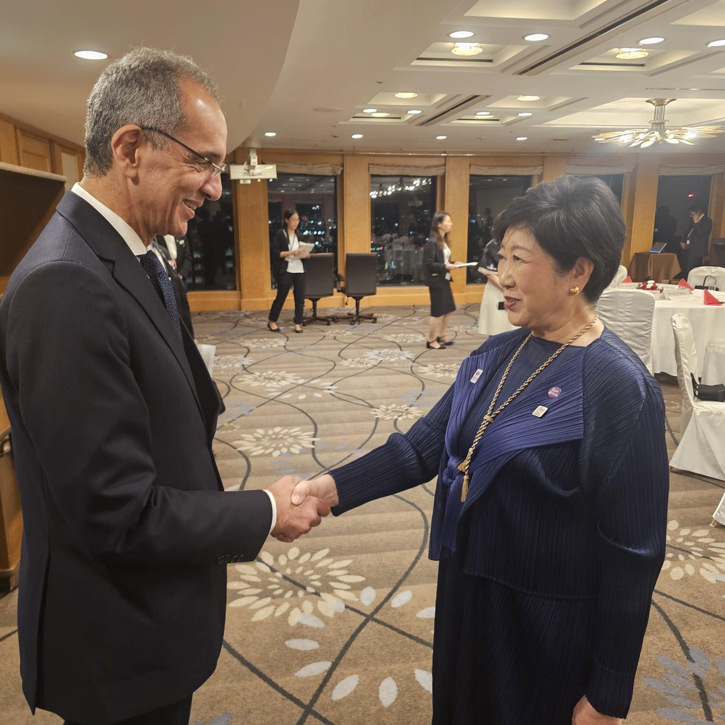 كما التقى الوزير بعدد من المصريين المقيمين في اليابان، وتناول حوارًا مفتوحًا حول التطورات التي تشهدها صناعة الاتصالات وتكنولوجيا المعلومات في مصر. وناقش خلال الاجتماع دور الذكاء الاصطناعي في دعم جهود التحول الرقمي، بالإضافة إلى أوجه الاستفادة من الخبرات المصرية في الخارج لدعم تلك الجهود.