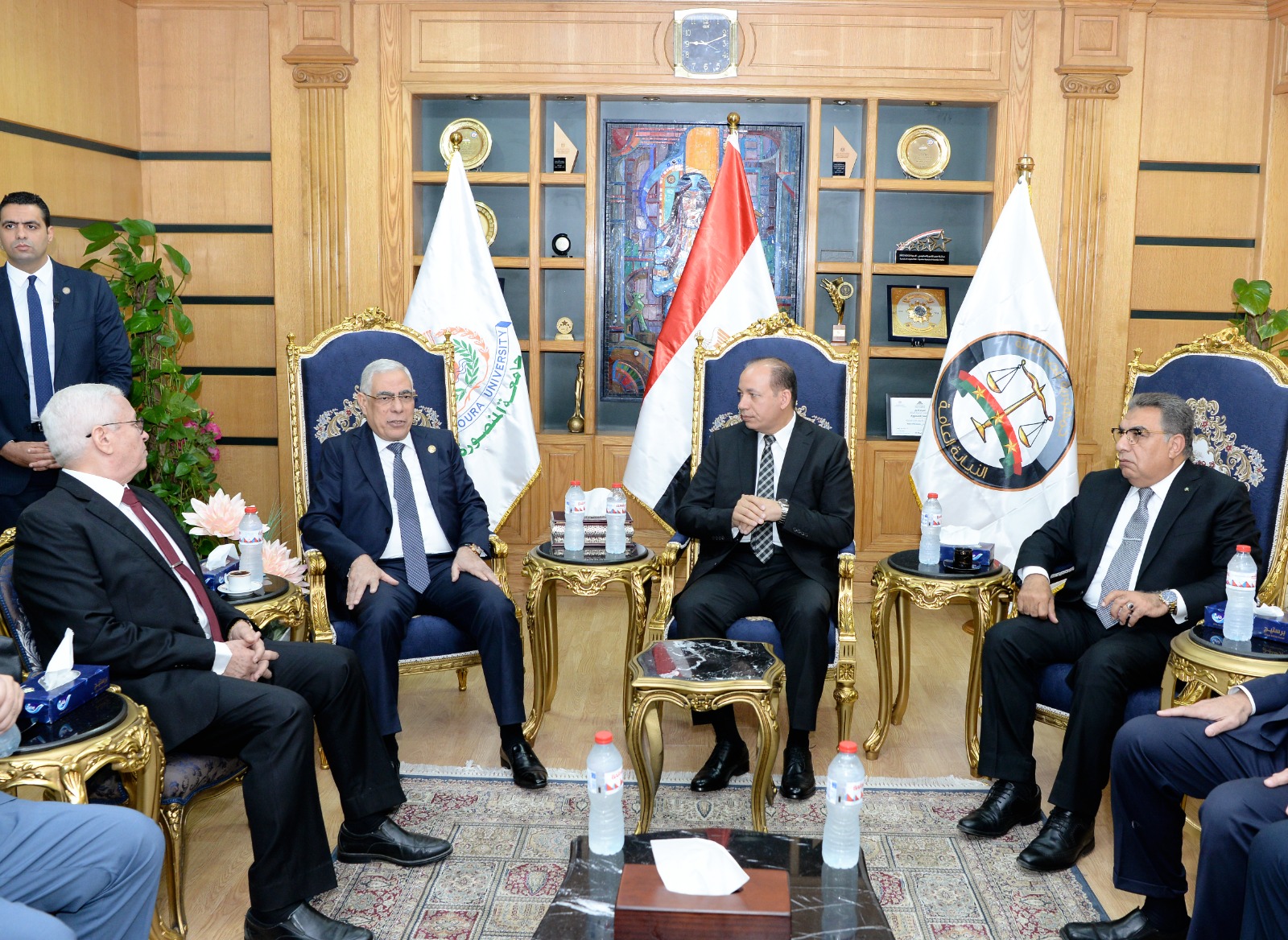 استقبل الدكتور شريف خاط،ر رئيس جامعة المنصورة، صباح اليوم الخميس، المستشار محمد شوقي النائب العام لجمهورية مصر العربية، واللواء طارق مرزوق محافظ الدقهلية، بمقر إدارة الجامعة.