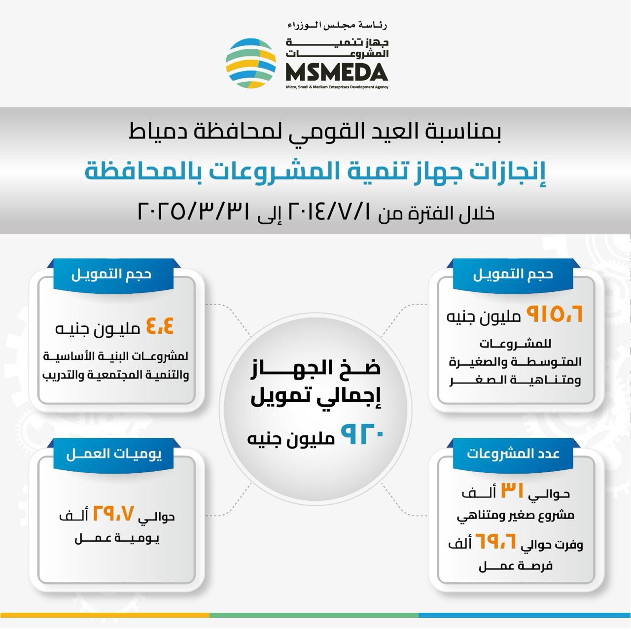 920 مليون جنيه لتمويل 31 ألف مشروع متوسط وصغير في دمياط.. إنفوجراف
