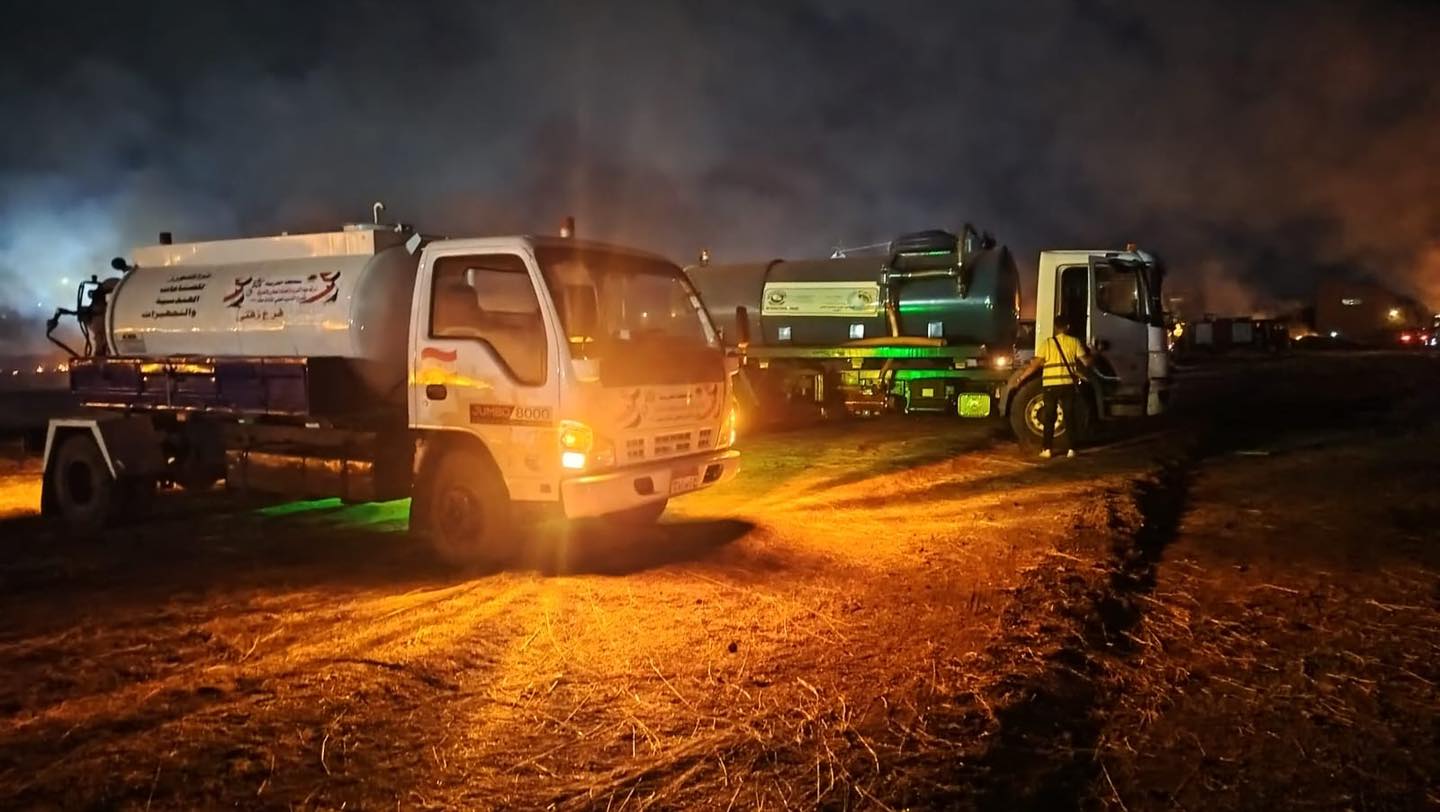وشهد موقع الحادث استنفارًا موسعًا فور تلقي البلاغ، حيث تم رفع درجة الاستعداد القصوى بجميع القطاعات، والتحرك الفوري من خلال مركز السيطرة التابع للشبكة الوطنية للطوارئ والسلامة العامة، وتم الدفع بـ(19) سيارة إطفاء، وخزان مياه بسعة 35 طنًا، و(22) فنطاس مياه كبيرة، و(12) سيارة مياه من مراكز ومدن وأحياء المحافظة، إلى جانب سيارات إسعاف، ولوادر ثقيلة، مع انتشار مروري مكثف لتأمين الموقع وتيسير حركة المعدات.