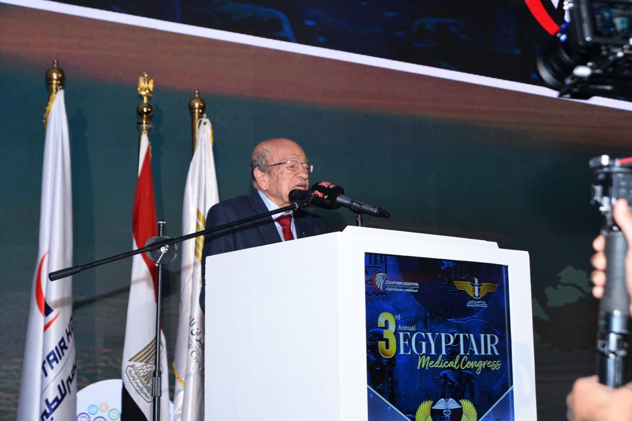 ومن جانبه، أشاد الدكتور محمد عوض تاج الدين بما تحقق داخل مستشفى مصر للطيران، واصفًا إياها بـ"قصة نجاح وطنية"، مشيرًا إلى أن انعقاد المؤتمر يتزامن مع احتفال مصر للطيران بعيدها الـ93، مؤكدًا أن "مصر للطيران في القلب دائمًا"، مضيفًا بأن المستشفى نجحت في تحقيق تطور سريع منذ انطلاق المؤتمر قبل ثلاث سنوات، وأنها أصبحت تضم وحدات متخصصة مثل وحدة زراعة النخاع، وتتمتع بكوادر طبية مؤهلة، وهو ما يعزز من قدرة مصر على تقديم خدمات طبية متقدمة داخليًا وخارجيًا.