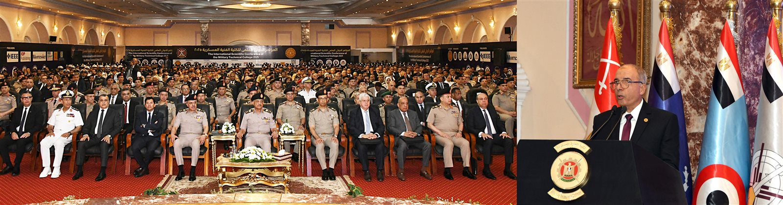 شهد الفريق أول عبد المجيد صقر القائد العام للقوات المسلحة وزير الدفاع والإنتاج الحربى افتتاح المؤتمر الدولى العلمى للكلية الفنية العسكرية لعام 2025، وذلك بحضور الفريق أحمد خليفة رئيس أركان حرب القوات المسلحة وعدد من الوزراء وقادة الأفرع الرئيسية وعدد من قادة القوات المسلحة والملحقين العسكريين وعدد من رؤساء الجامعات والشخصيات العامة.