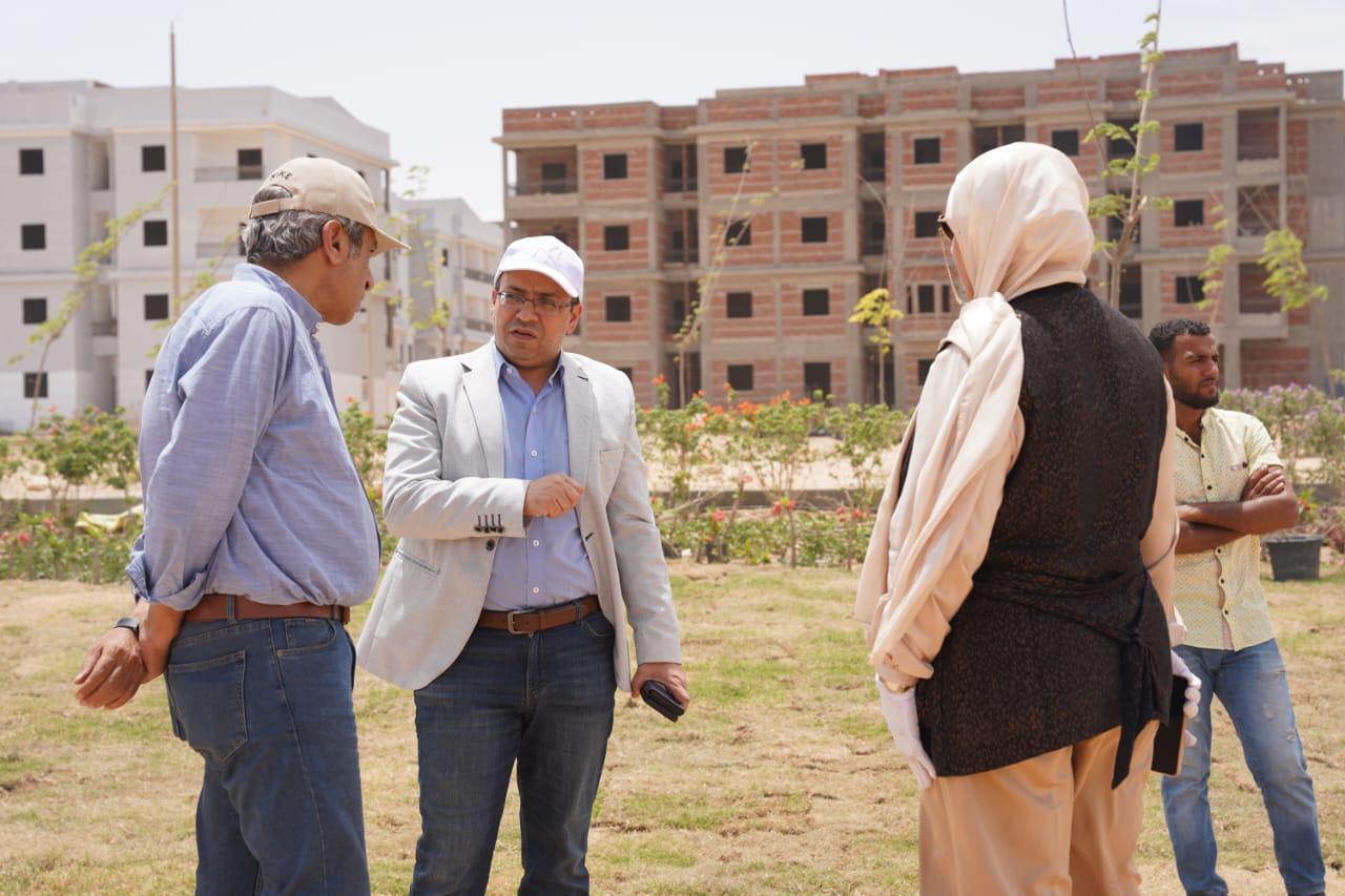 وتابع رئيس الجهاز، أعمال التنفيذ لعدد من العمارات، وكذا أعمال التشطيبات من تركيب الأرضيات والدهانات الداخلية والواجهات الخارجية للبعض الآخر، موضحاً أن المشروع يقع بمنطقة ٧٣٥ فدانا مجاورة رقم ٣٦، ويتكون من ١٣٥٦ وحدة "٥٤ عمارة"، وأنه تم الانتهاء من أعمال تشطيب بعض الوحدات والواجهات الخارجية لبعض العمارات وجارِ العمل على تنفيذ باقي العمارات.