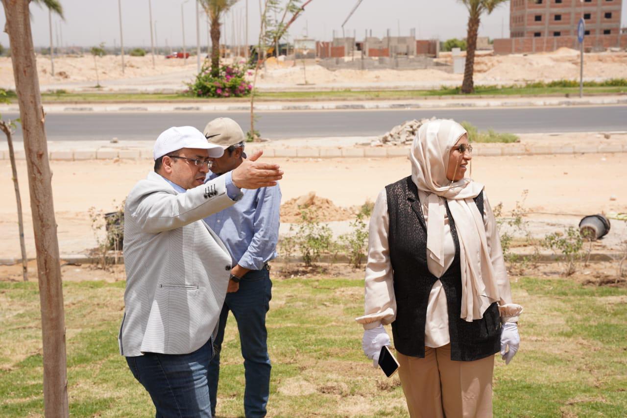 وفي سياق متصل، تفقد رئيس الجهاز أعمال الزراعة والتنسيق بمنطقة ٤٥٥ فدانا بطول طريق المطار، وصولا إلى مدخل المدينة الجنوبي، مطالباً الشركة المنفذة بسرعة الانتهاء من تنفيذ الأعمال حسب الخطة الزمنية المتفق عليها، مع ضرورة الاهتمام بالمعايير والجودة فى التنفيذ.