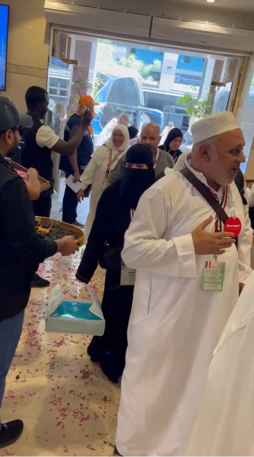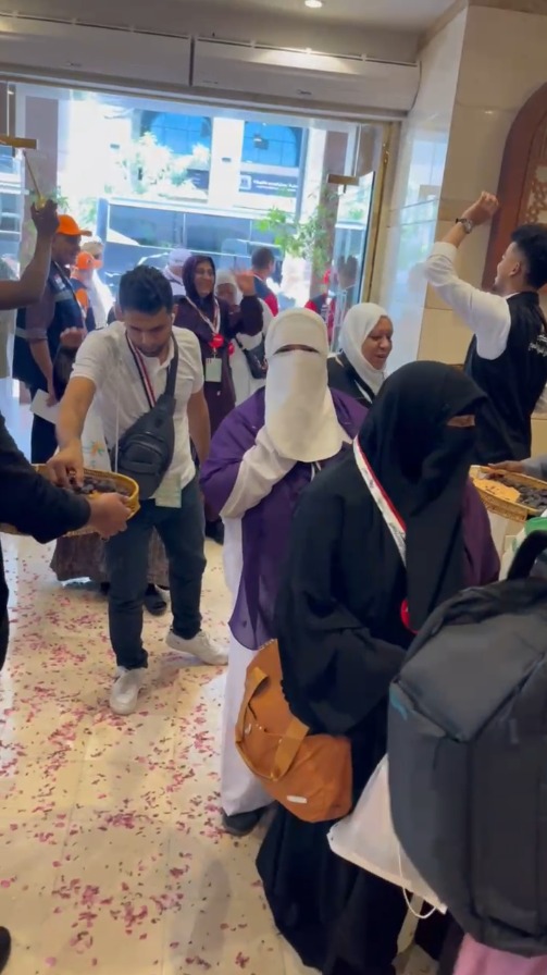 واستقبل مشرفو المؤسسة القومية لتيسير الحج الحجاج فور وصولهم إلى مطار المدينة المنورة، وتم استقلالهم الباصات المخصصة لنقلهم إلى الفنادق القريبة من ساحة الحرم النبوي، وتم تسكينهم، ثم توجهوا لأداء الصلاة في المسجد النبوي الشريف.