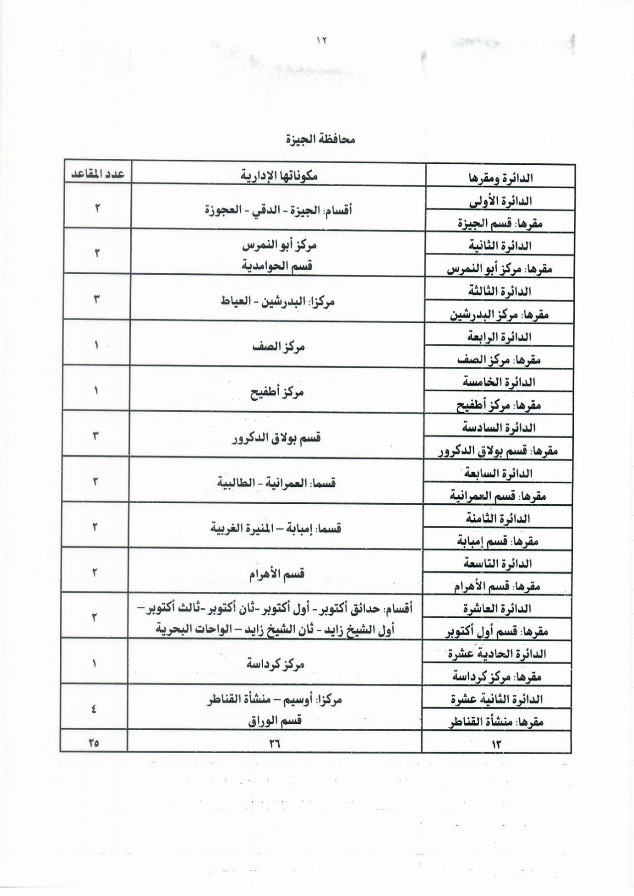 وفيما يلي ننشر عدد مقاعد مجلس النواب في محافظة الجيزة والتي تضم 25 مقعدا موزعة كالآتي: