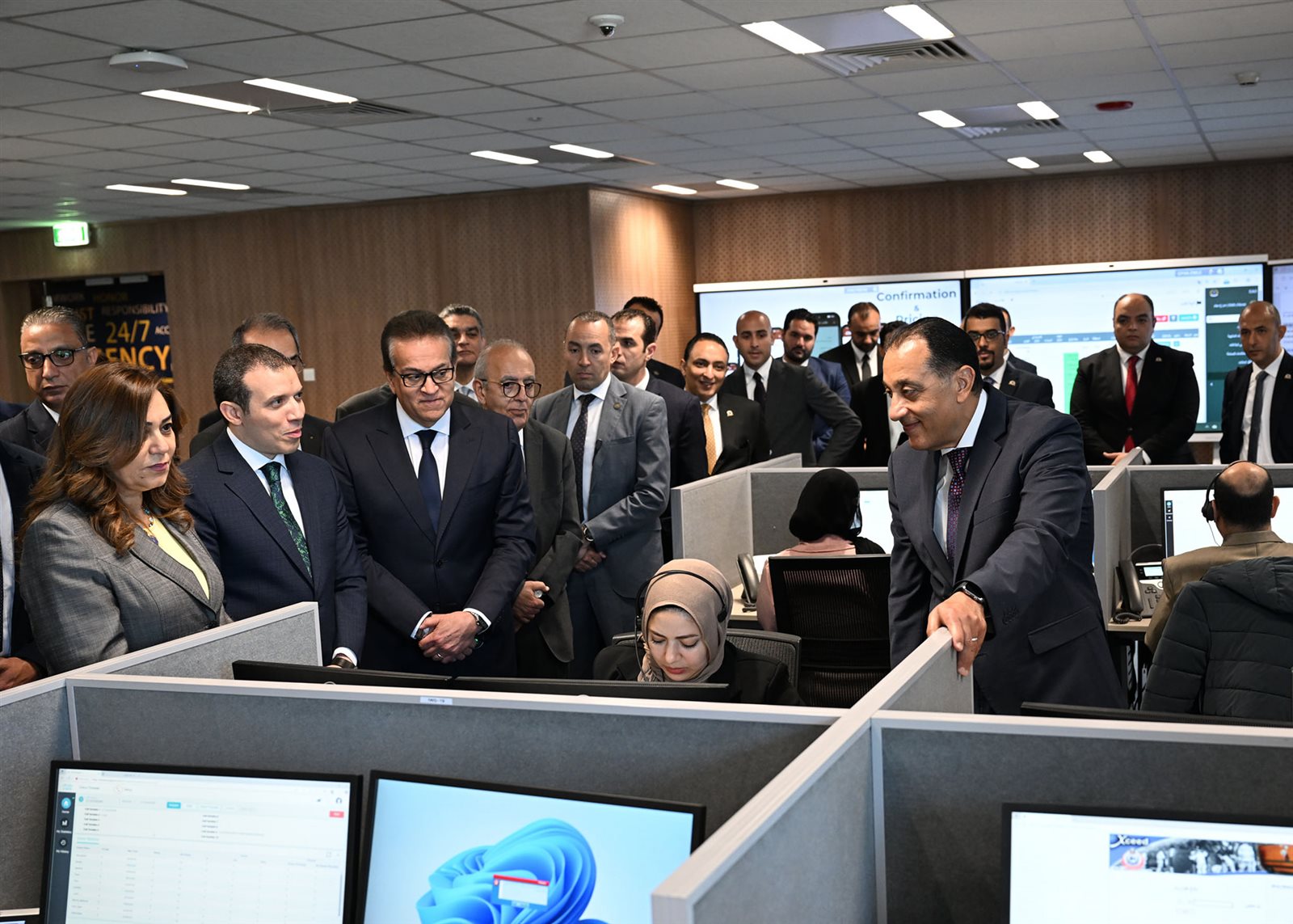 وخلال جولته بالمقر، تفقد مدبولي، مركز تلقي البلاغات بمقر هيئة الإسعاف المصرية، واستمع إلى شرح من الدكتور شريف مدحت، مدير عام التخطيط الاستراتيجي بالهيئة، الذي أشار إلى أن هذا المركز يُعد اول مركز تلقي بلاغات حكومي في مصر، والذي يدعم قدرات الهيئة في استقبال بلاغات من المواطنين على الخط الموحد 123 التي تسبق تحريك سيارة الإسعاف، حيث تستقبل عددًا كبيرًا منها، وذلك من خلال 187 مقعدًا بالمركز، مع إمكانية زيادة العدد مستقبلًا، ويعمل عليها فريق مدرب، على مدار 24 ساعة، طوال الأسبوع، لاستقبال البلاغات الطارئة وغير الطارئة على مستوى الجمهورية.