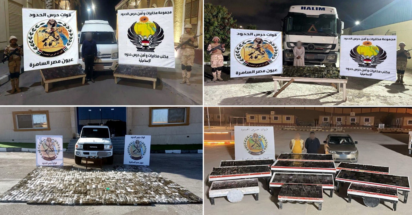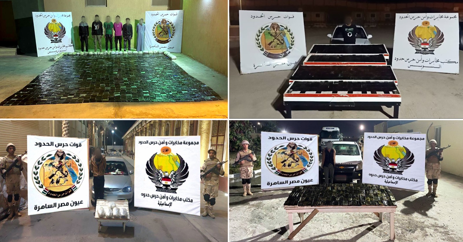 تنفيذاً لتوجيهات القيادة العامة للقوات المسلحة بتكثيف أعمال التأمين على كافة الاتجاهات الاستراتيجية واصلت قوات حرس الحدود جهودها في تنفيذ الضربات الناجحة وإحباط المحاولات التي تستهدف الإضرار بالأمن القومي المصري.