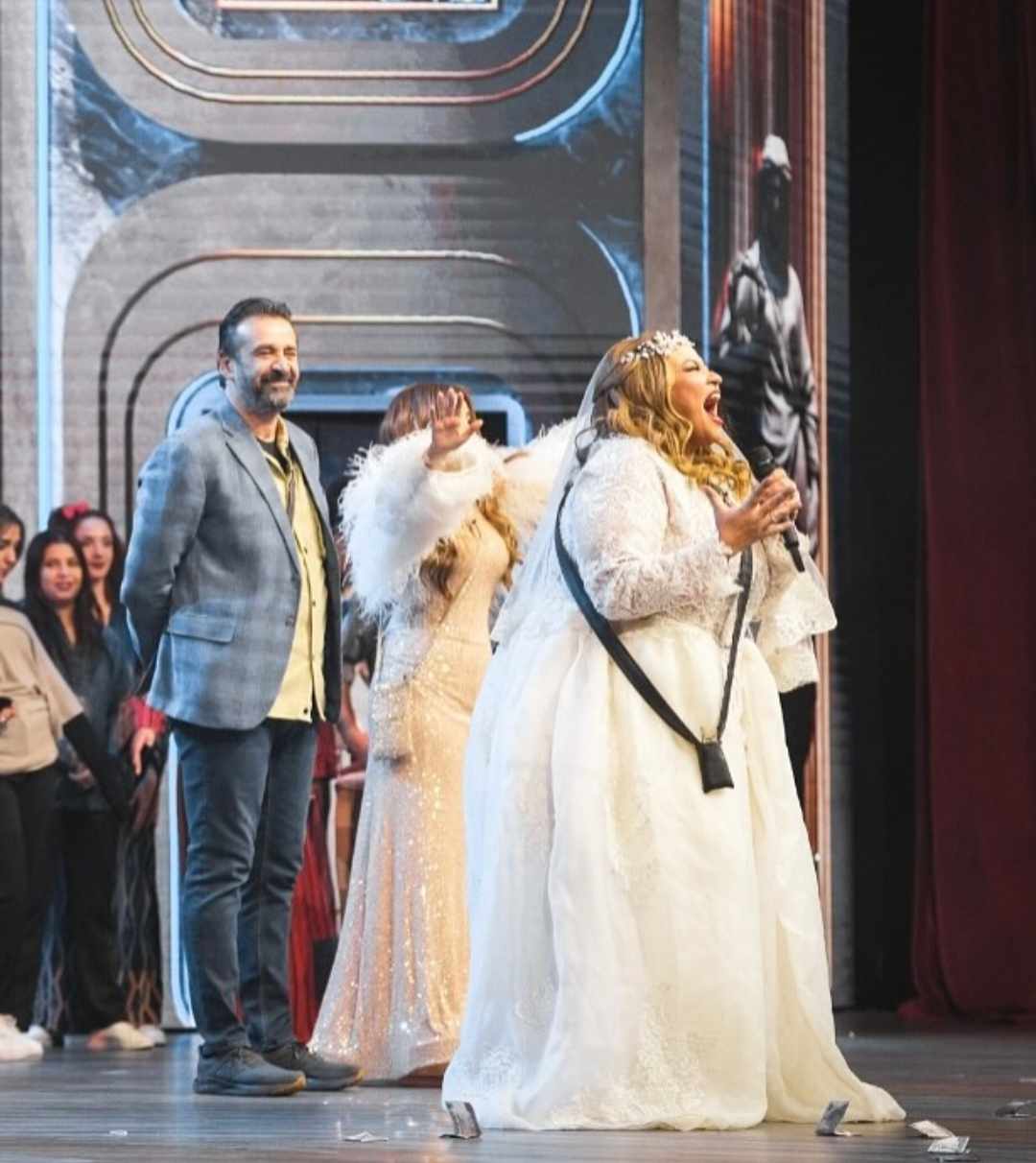 وقد ظهرت ويزو في الصور التي نشرتها على صفحتها الشخصية بموقع "إنستجرام"، وهي تقف على خشبة المسرح برفقة عدد من أبطال العمل، خلال عرض حي للمسرحية، حيث بدت الأجواء مليئة بالحيوية والتفاعل بين النجوم، ما يعكس أجواء مميزة خلف كواليس هذا العمل المسرحي المنتظر.