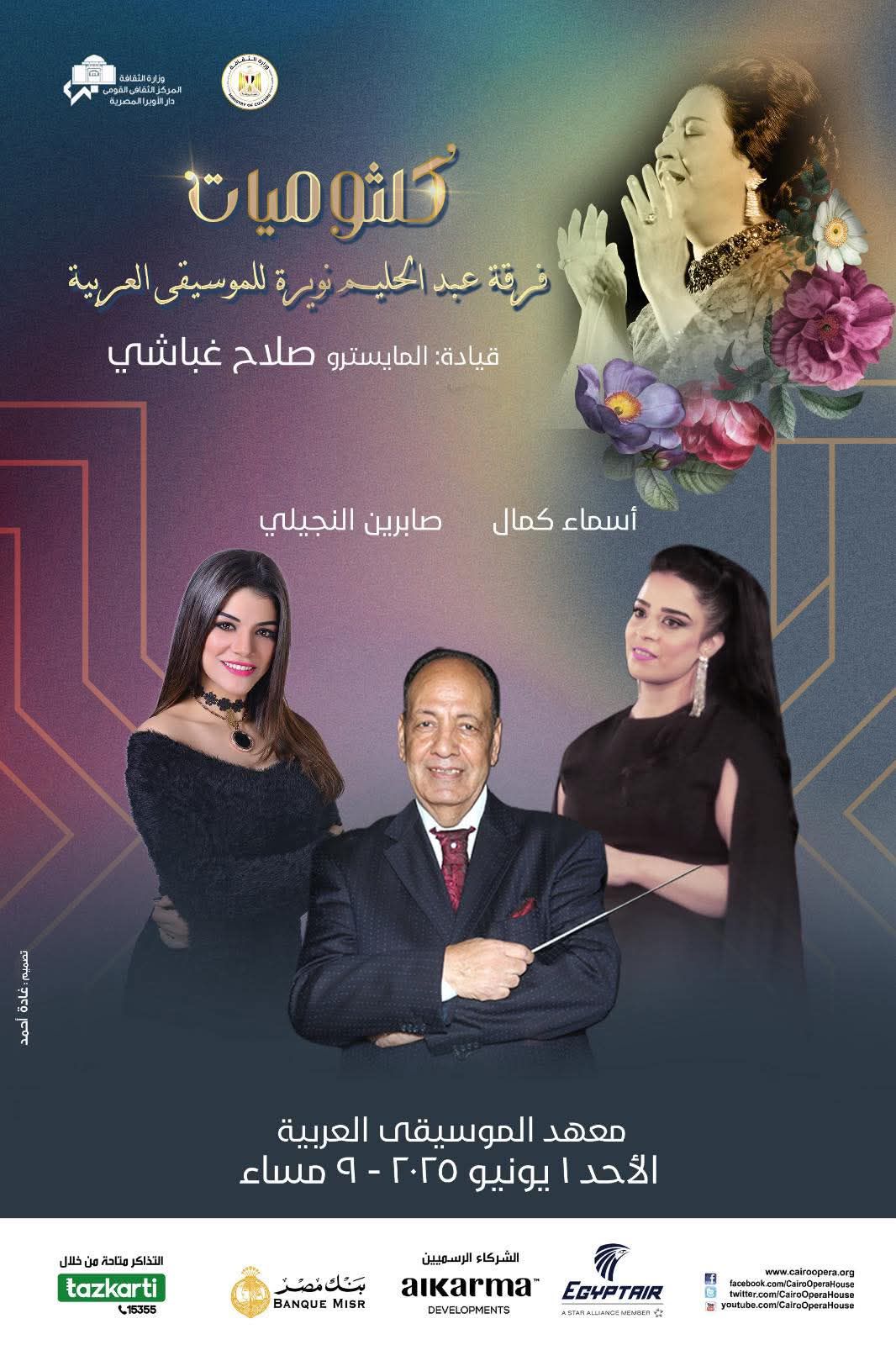 أعلنت دار الأوبرا المصرية، نفاد جميع تذاكر الحفل الغنائي "كلثوميات" التي تقام يوم الأحد الموافق 1 يونيو ضمن فعاليات وزارة الثقافة وإشراف دار الأوبرا المصرية برئاسة الدكتور علاء عبد السلام، وتقديم فرقة عبد الحليم نويرة للموسيقى العربية بقيادة المايسترو صلاح غباشى، على مسرح معهد الموسيقى العربية، يتضمن البرنامج مختارات من أعمال سيدة الغناء العربى أم كلثوم التى تعاونت خلالها مع كبار الملحنين والشعراء أداء أسماء كمال وصابرين النجيلى.