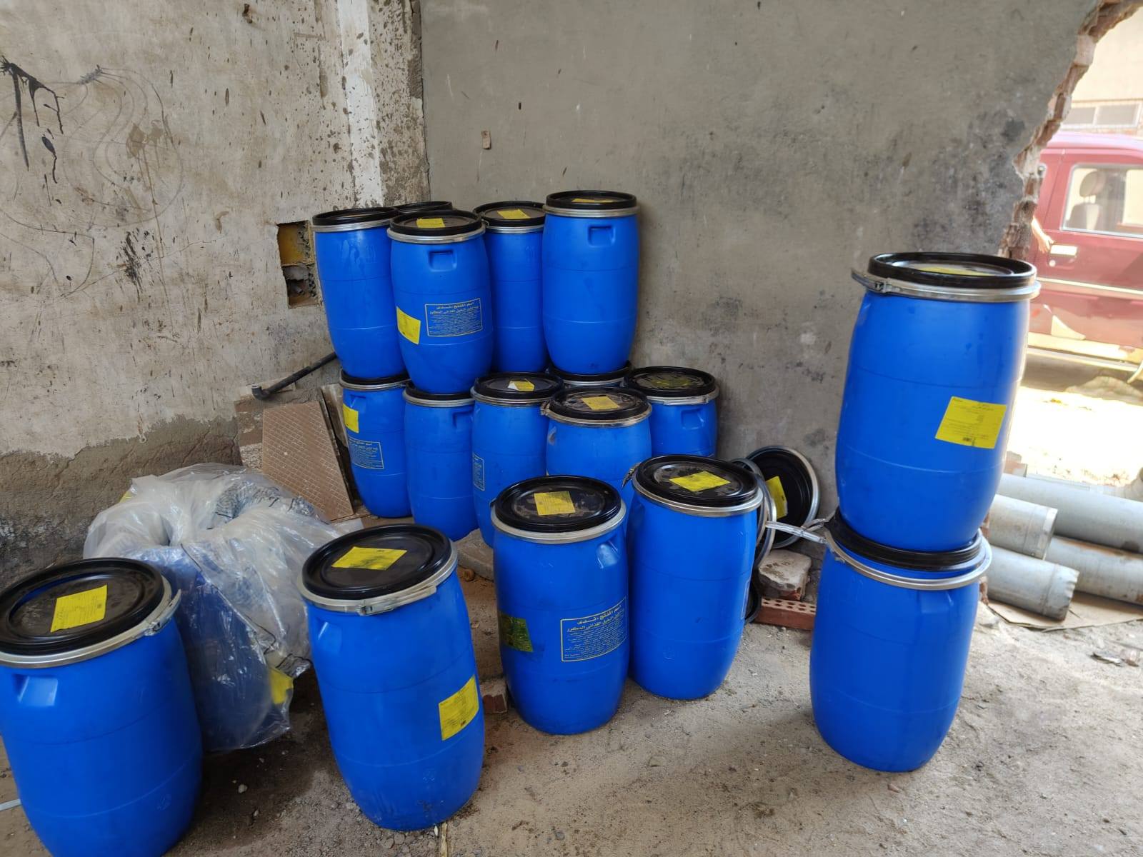 كما تم ضبـط 18 ألـف كيس فارغ يحمل علامات تجارية وهمية، و 9 ألاف كرتونة فارغة لزوم التعبئة ومدون عليها بيانات وهمية، وضبـط طــن زيـت طعـام مجهول المصدر.