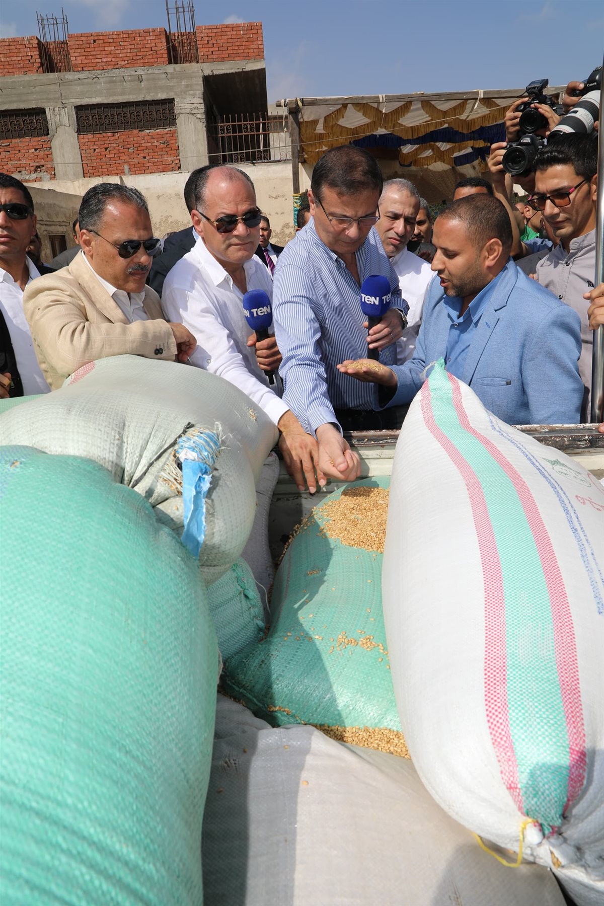 تفقد علاء فاروق وزير الزراعة واستصلاح الأراضي، يرافقه المهندس حازم الأشموني محافظ الشرقية ومحمد أبو السعود الرئيس التنفيذي للبنك الزراعي المصري، شونة توريد القمح بقرية العزيزية بمركز منيا القمح بمحافظة الشرقية، بحضور المهندس مصطفى الصياد نائب وزير الزراعة ووفد رفيع المستوى من قيادات الوزارة.