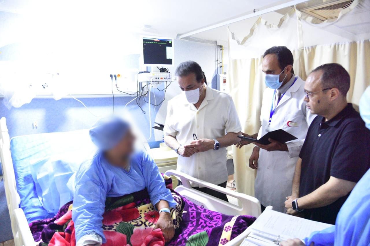 وأضاف «عبدالغفار» أن الوزير تفقد قسم الإنعاش القلبي الرئوى، وحرص على التأكد من توافر جميع المستلزمات الطبية بالقسم، كما تفقد قسم الطوارئ والاستقبال، حيث تبلغ الطاقة الاستيعابية للقسم 14 سريرا، كما تفقد الوزير قسم الرعاية المركزة، الذي يضم 10 أسرة، وحرص على الاستماع إلى التاريخ المرضي لنزلاء القسم، واطلع على تطورات الحالة الصحية للمرضى بالقسم، موجهًا بتوفير كافة سبل الرعاية الصحية لهم، كما تفقد قسم الحضانات الذي تضم 5 حضانات.