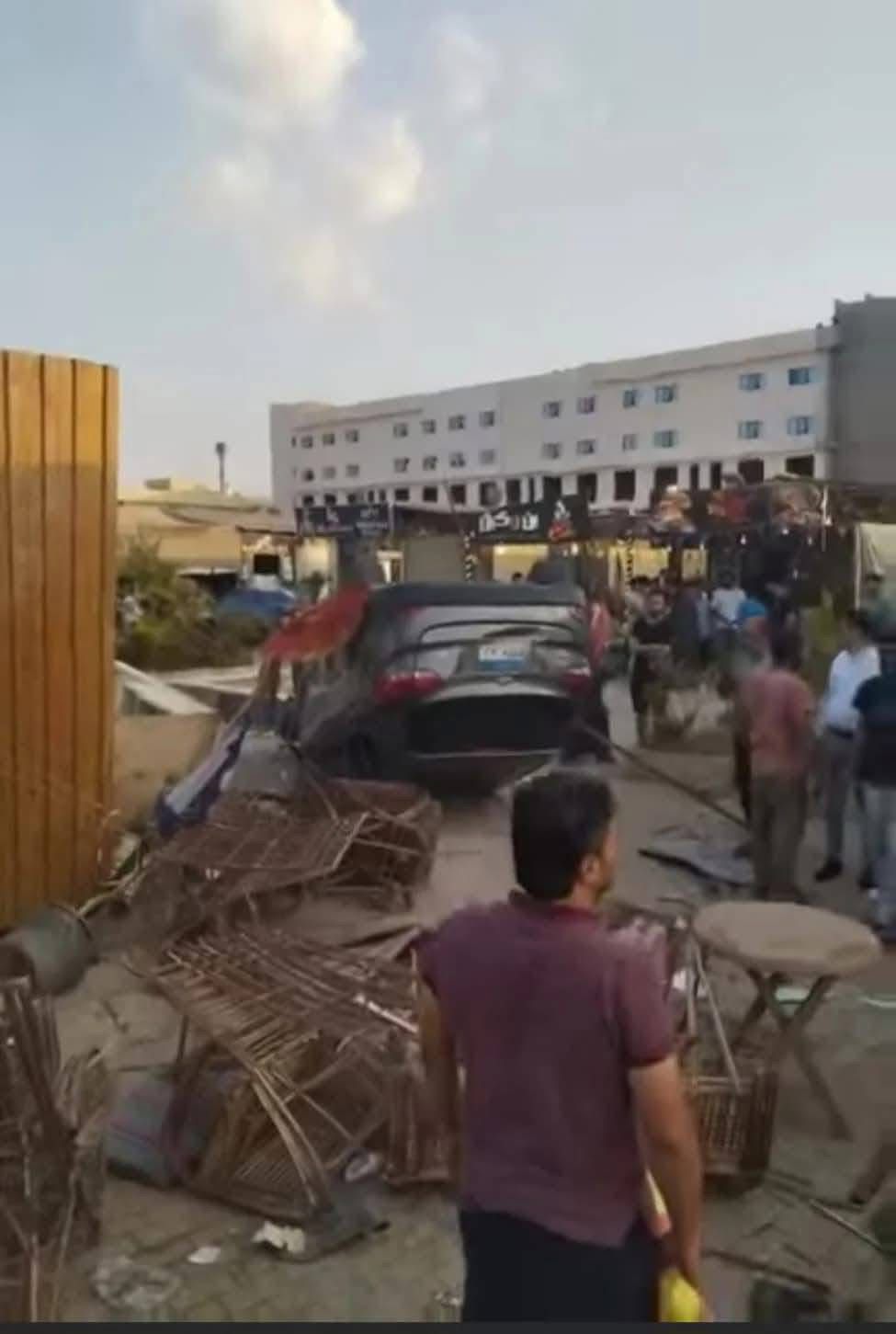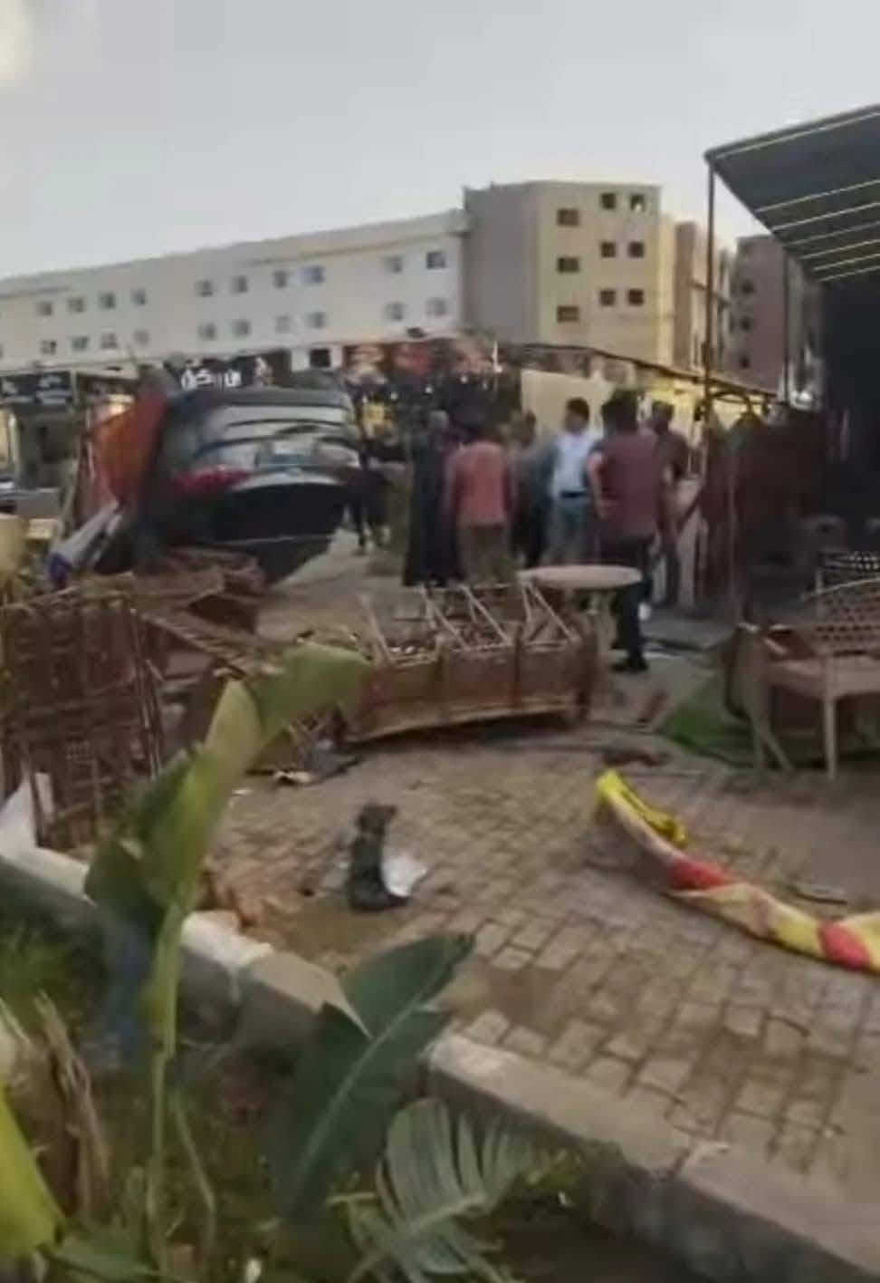 سائق يقتحم كافيه بسيارته في 6 أكتوبر ويصيب 4 أشخاص| صور