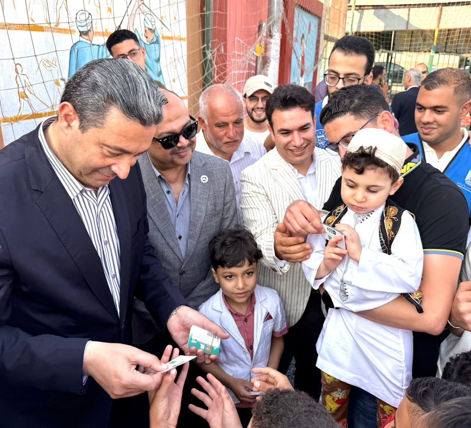 وفي السياق نفسه، وزع الدكتور أيمن الشهابي، محافظ دمياط، كروت وقسائم شراء مسبقة الدفع كعيدية مقدمة من الرئيس عبدالفتاح السيسي على الأطفال.