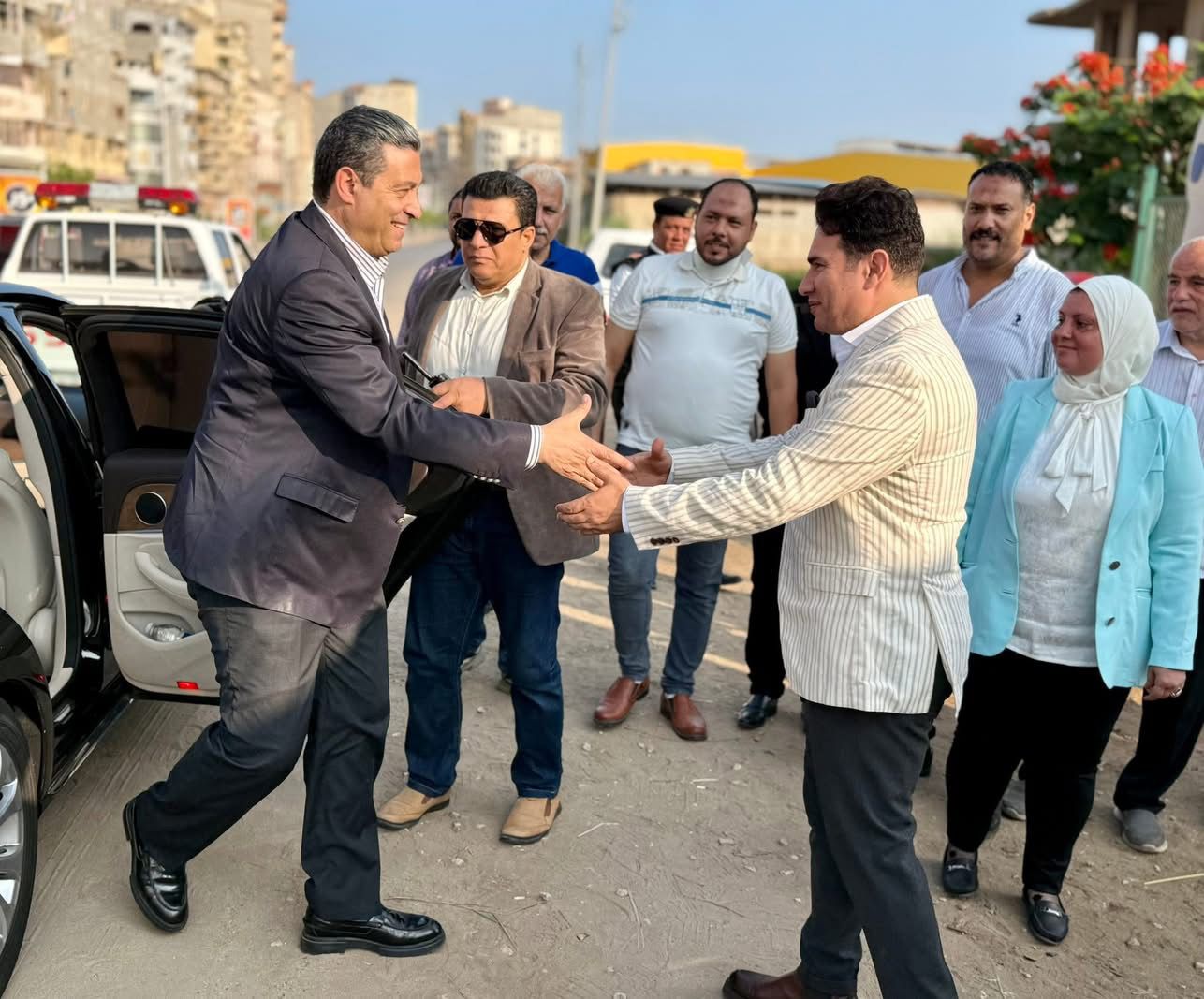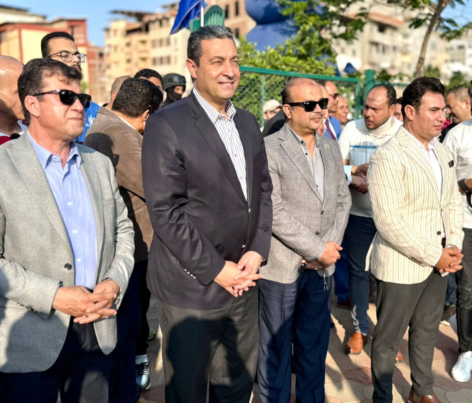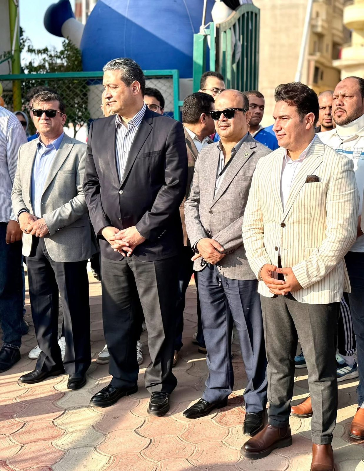 رافق محافظ دمياط كل من اللواء محمد همام، سكرتير عام المحافظة، واللواء عبدالله عاشور، السكرتير العام المساعد، والدكتور محمد فوزي، مدير مديرية الشباب والرياضة، سمير عتريس، رئيس الوحدة المحلية لمركز ومدينة دمياط.