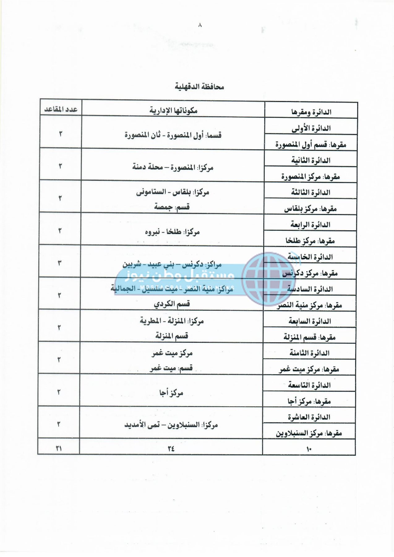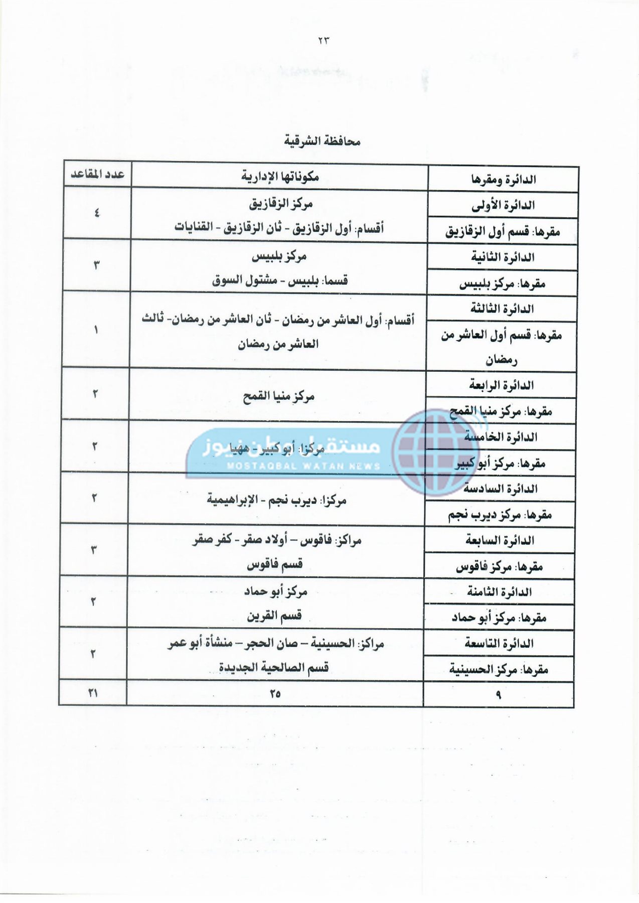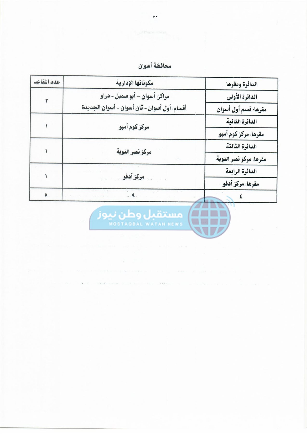 أولًا: جداول دوائر وعدد مقاعد نظام الفردي لمجلس النواب بكل محافظة