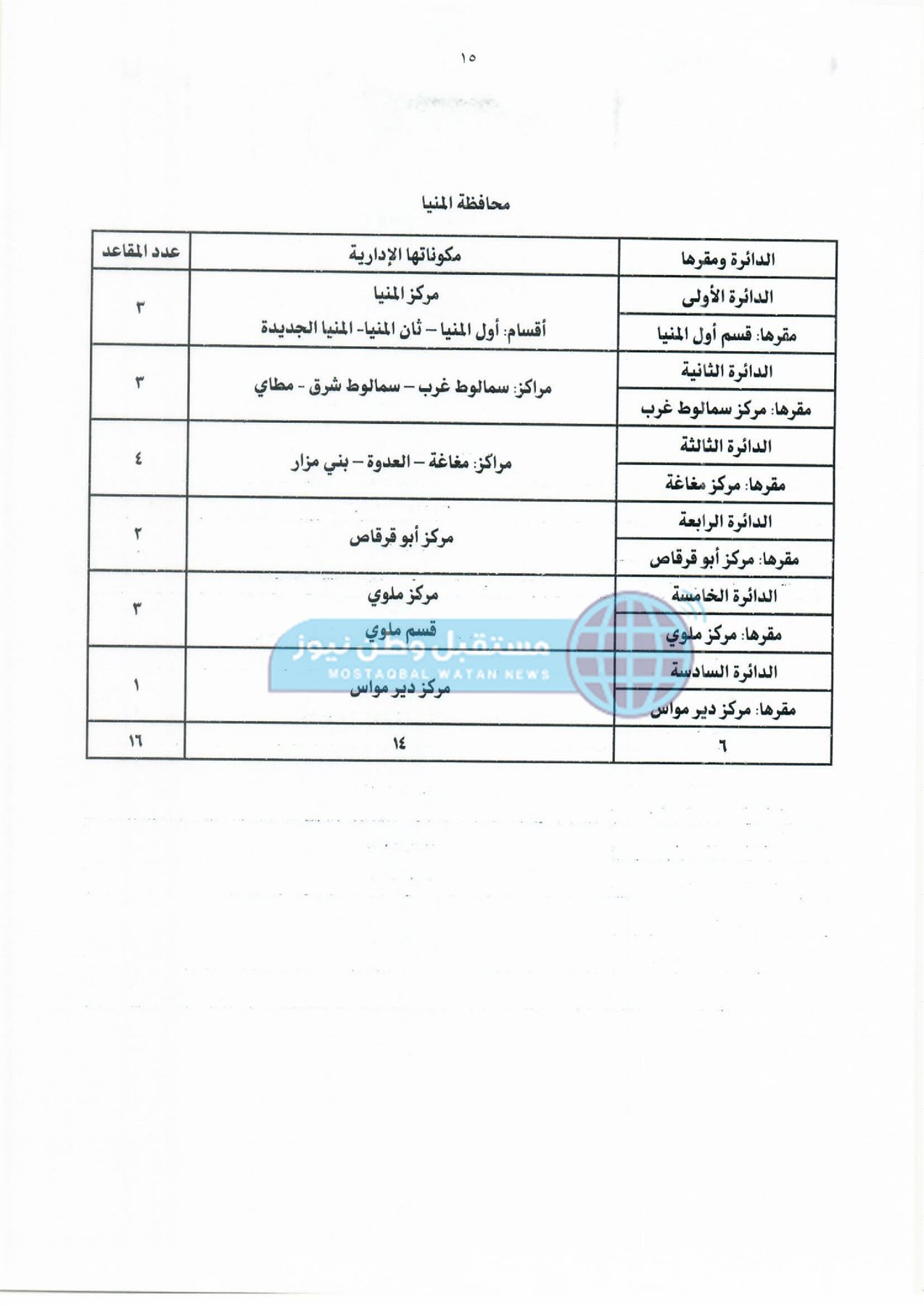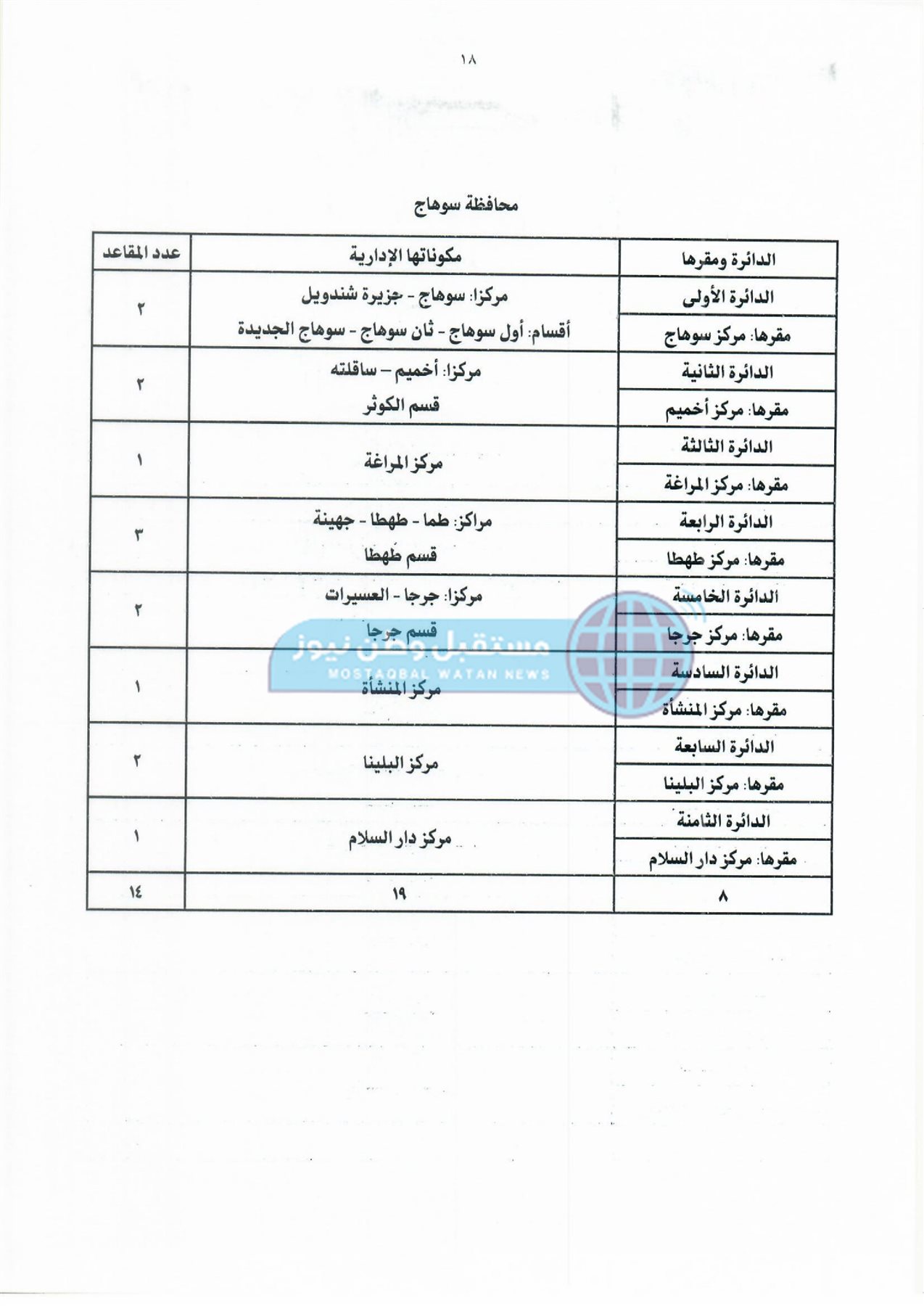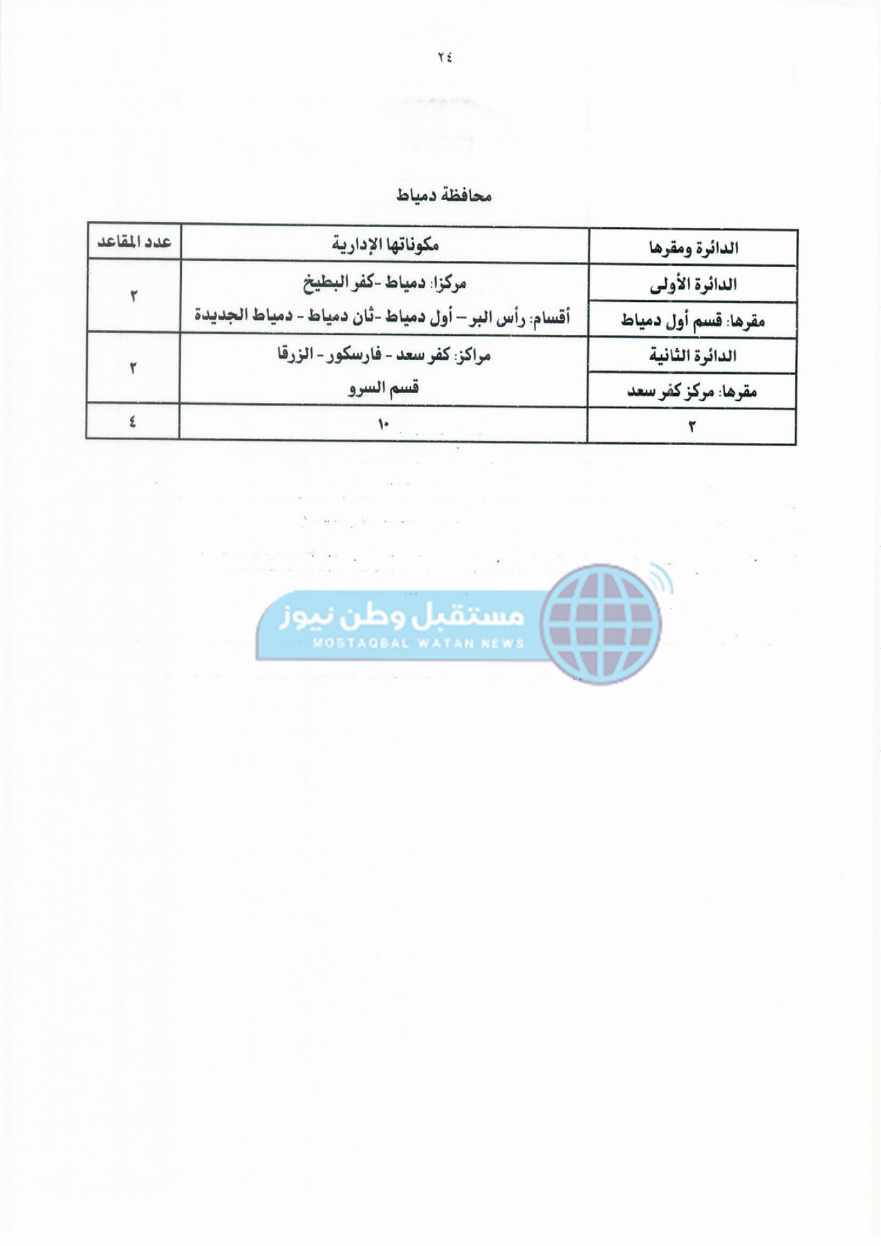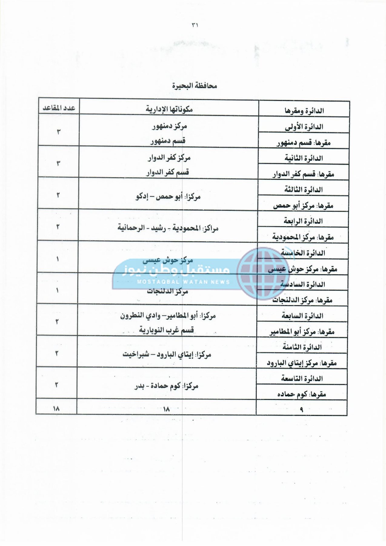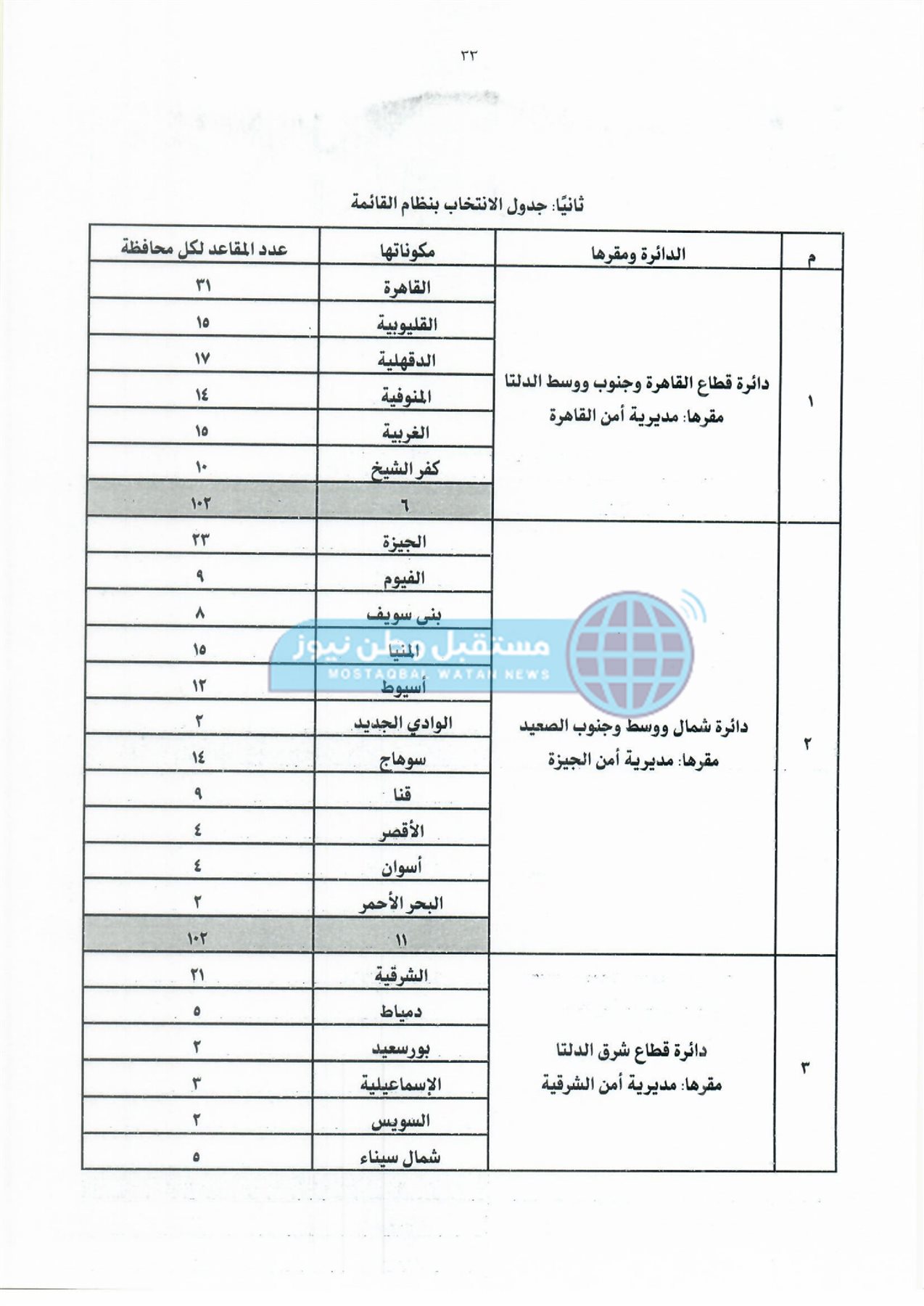 ثانيًا: جدول دوائر وعدد مقاعد نظام القائمة لمجلس النواب