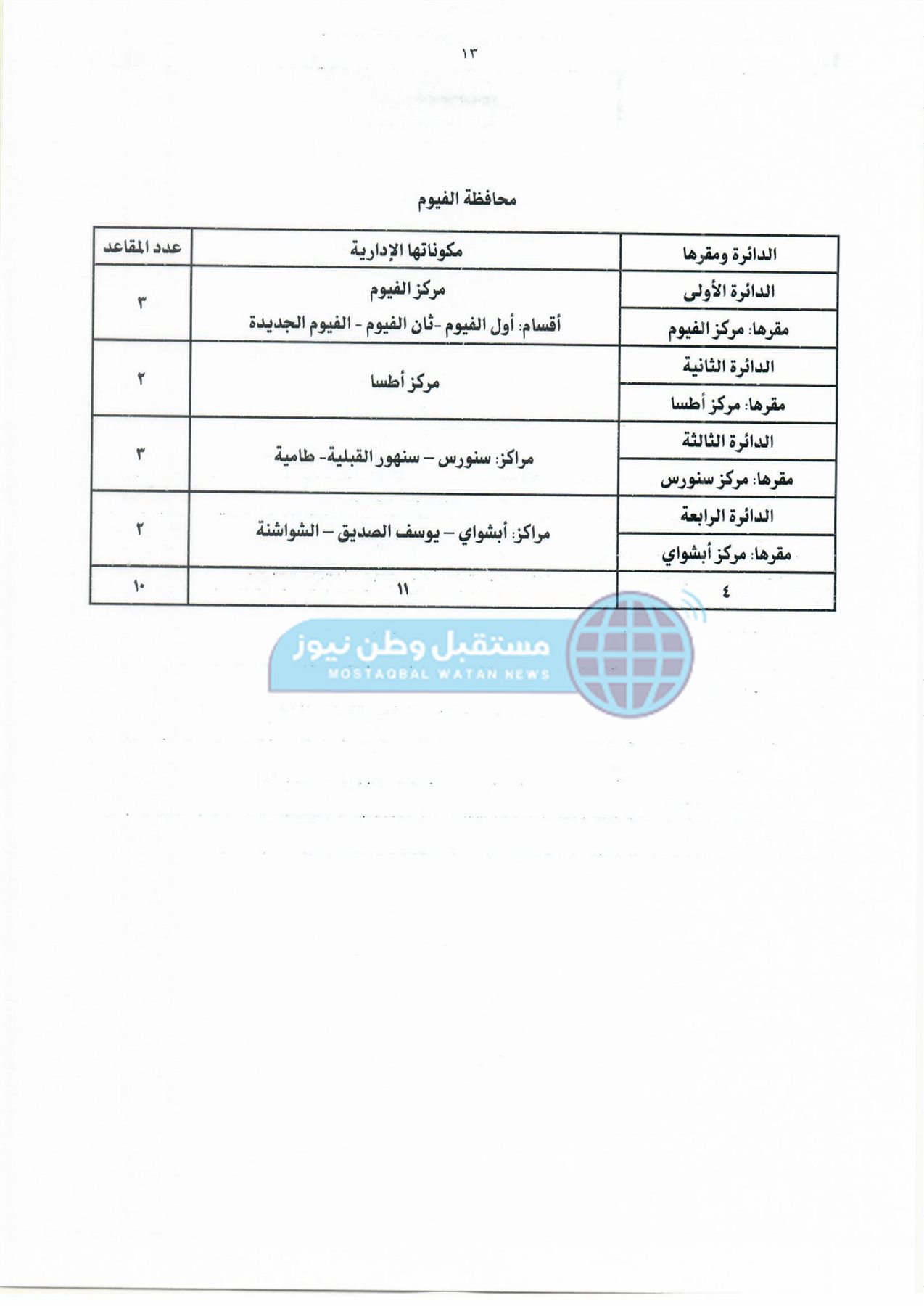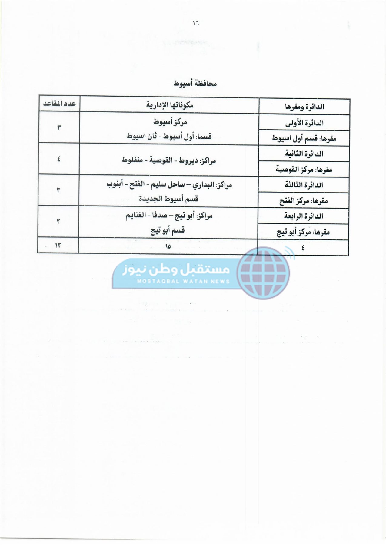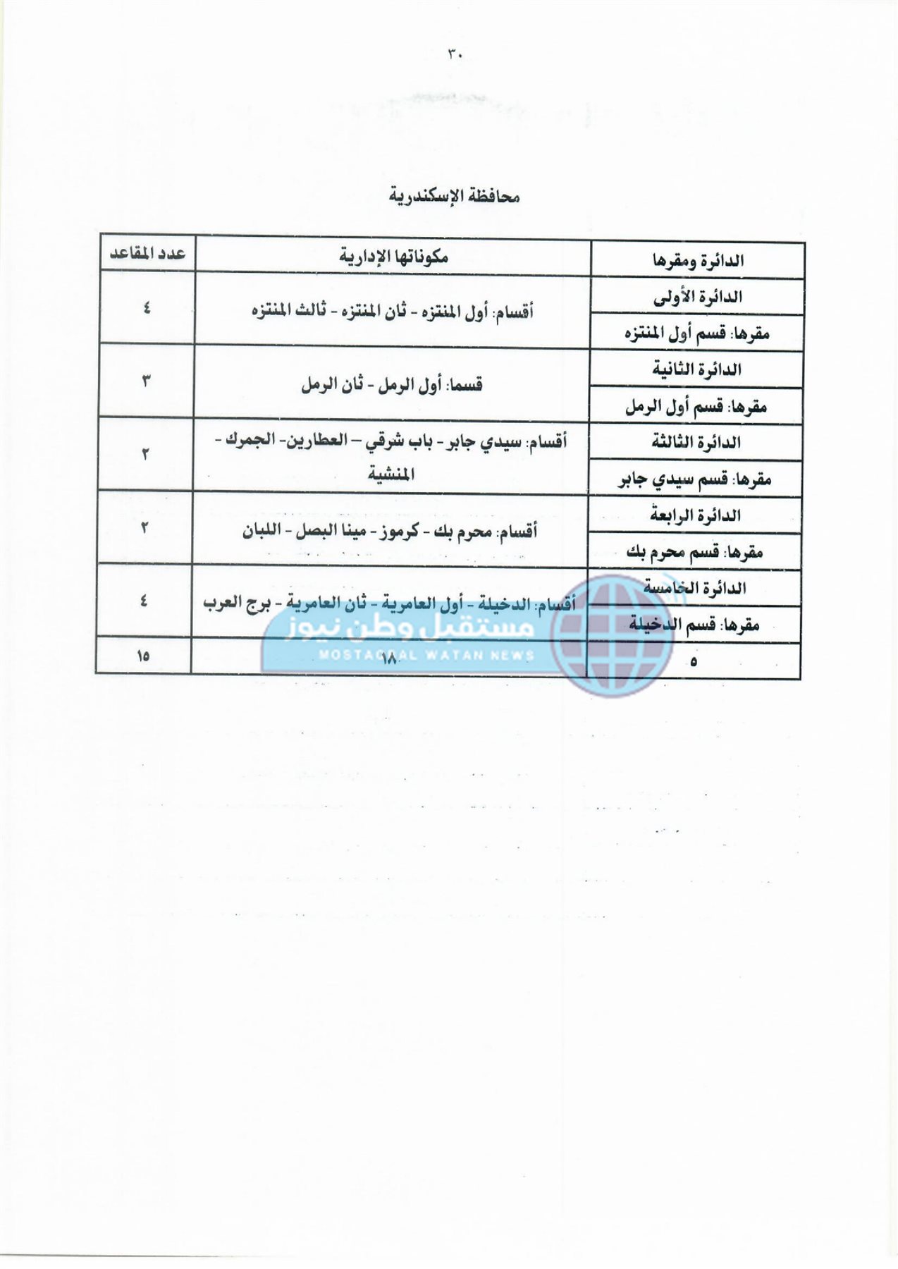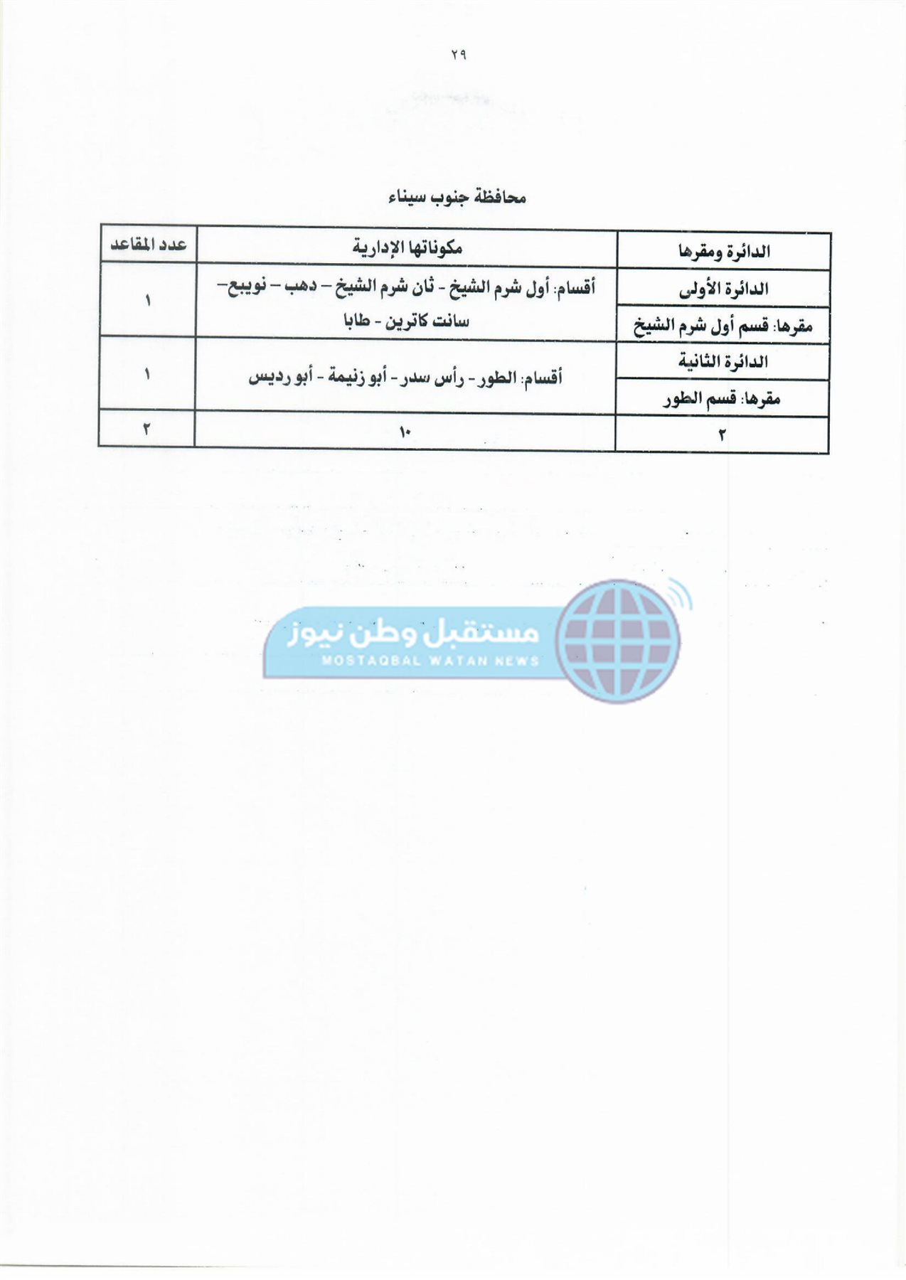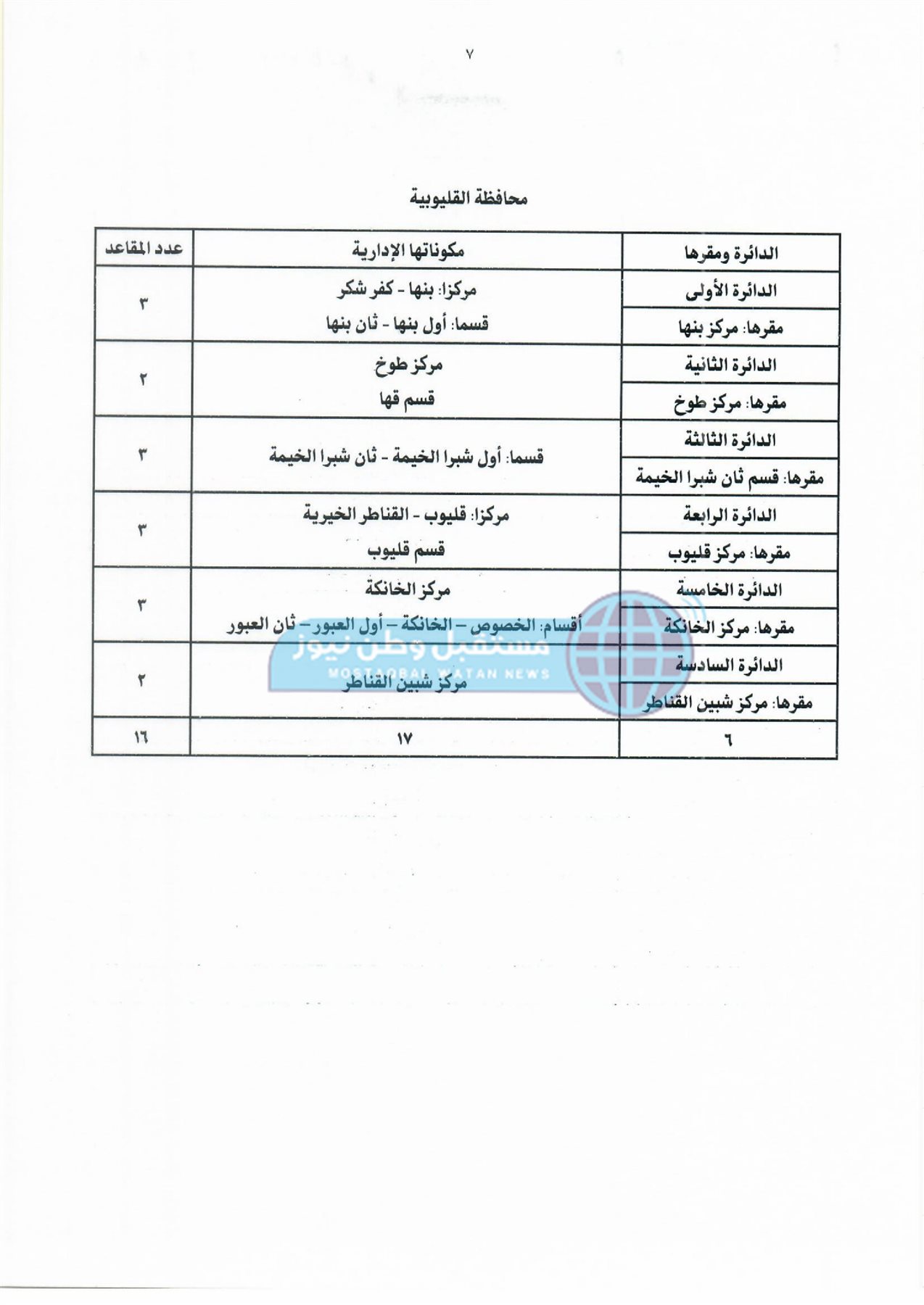 ثانيًا: جدول دوائر وعدد مقاعد نظام القائمة لمجلس النواب