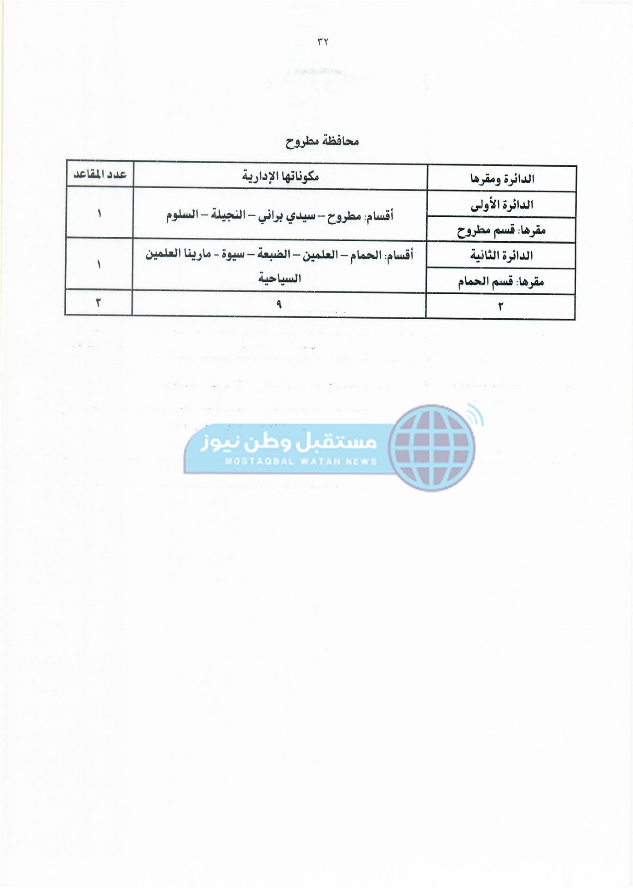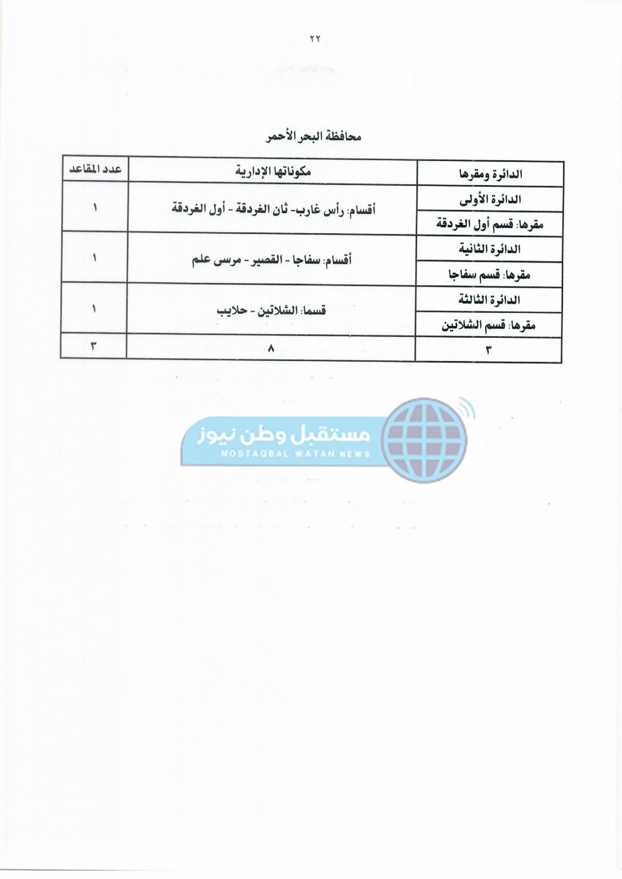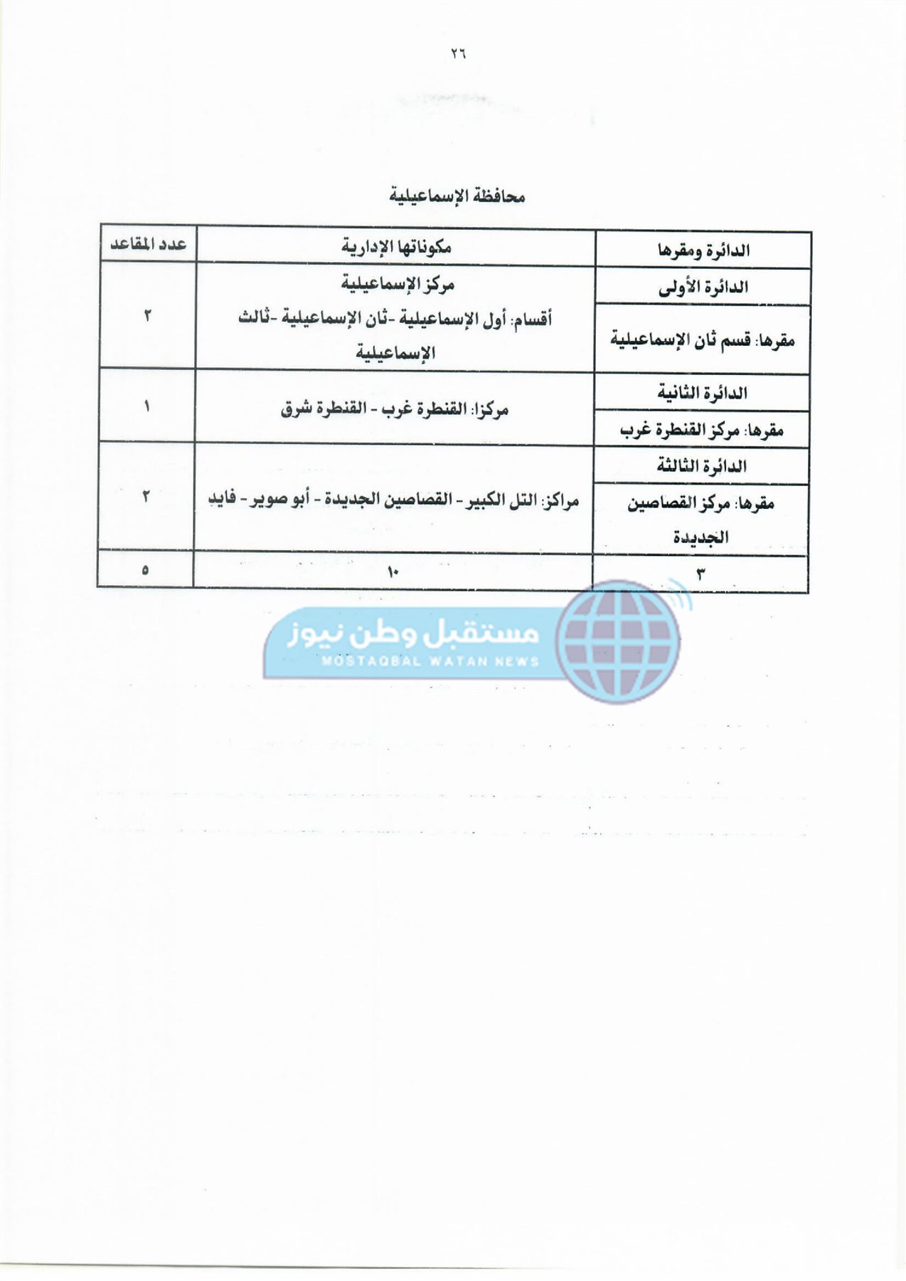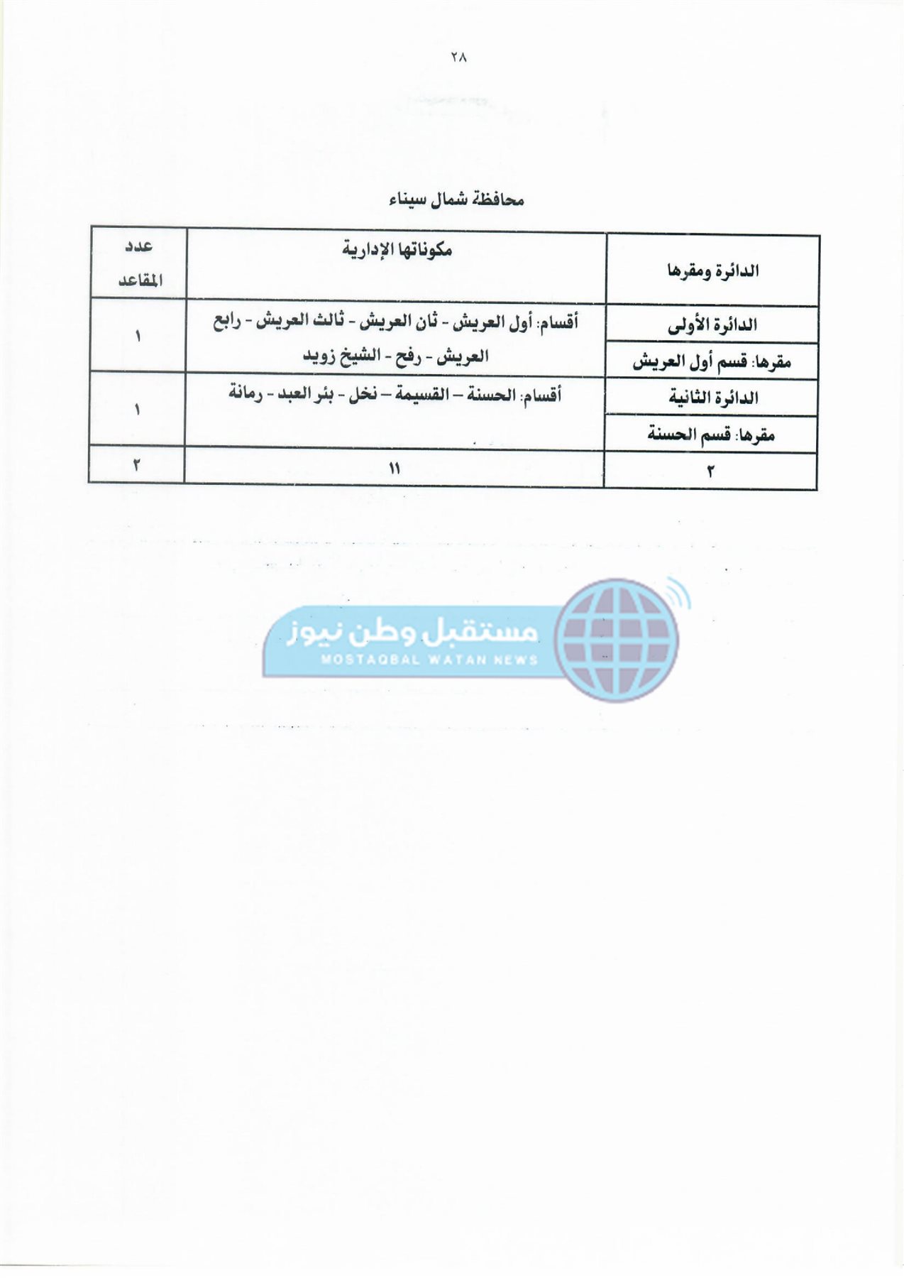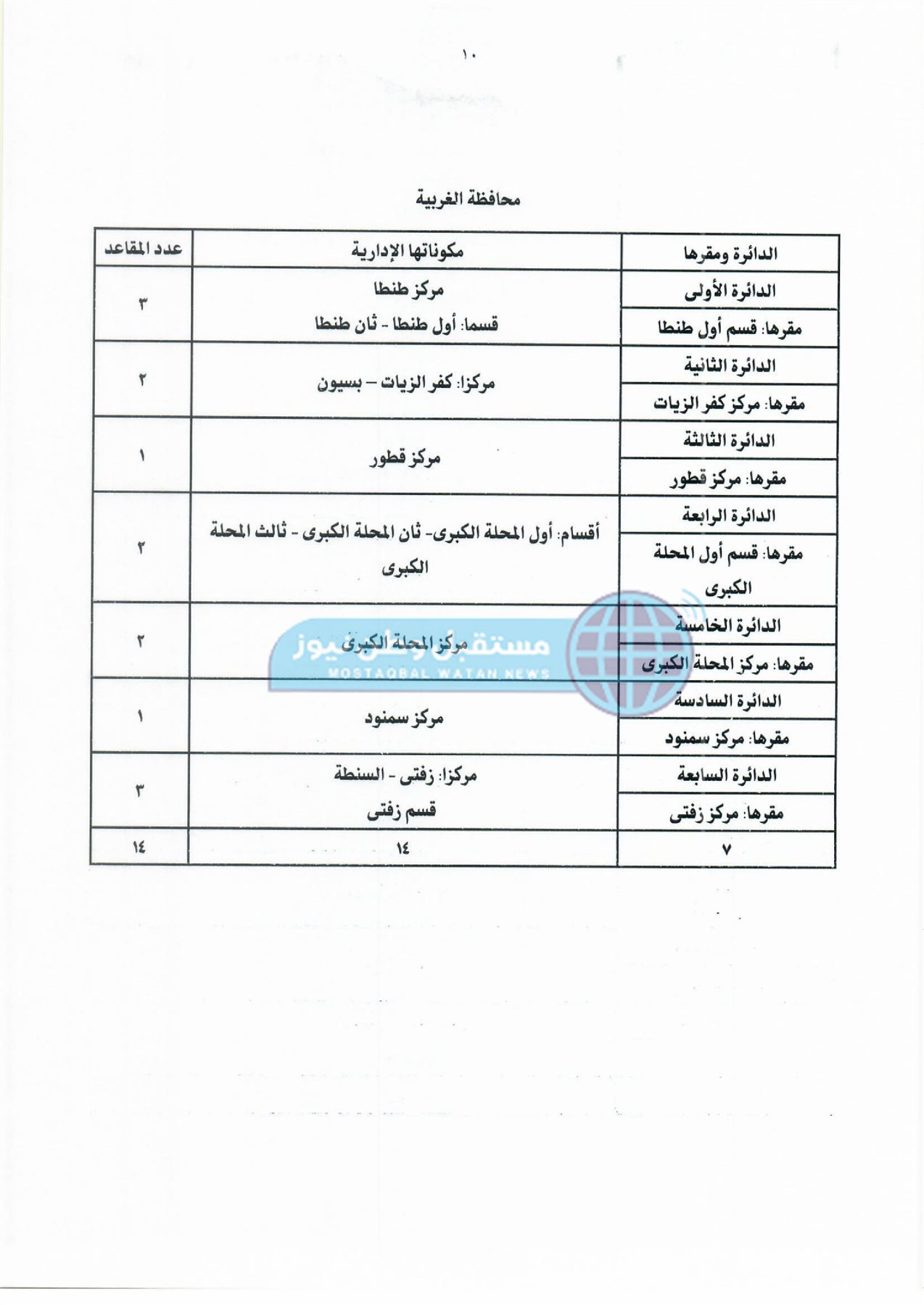 ثانيًا: جدول دوائر وعدد مقاعد نظام القائمة لمجلس النواب