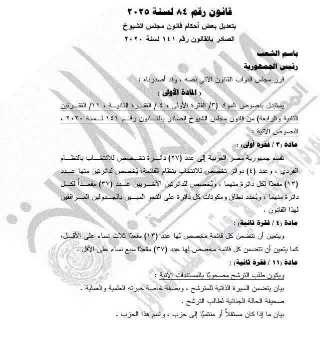 تعديلات قوانين مجلسي النواب والشيوخ