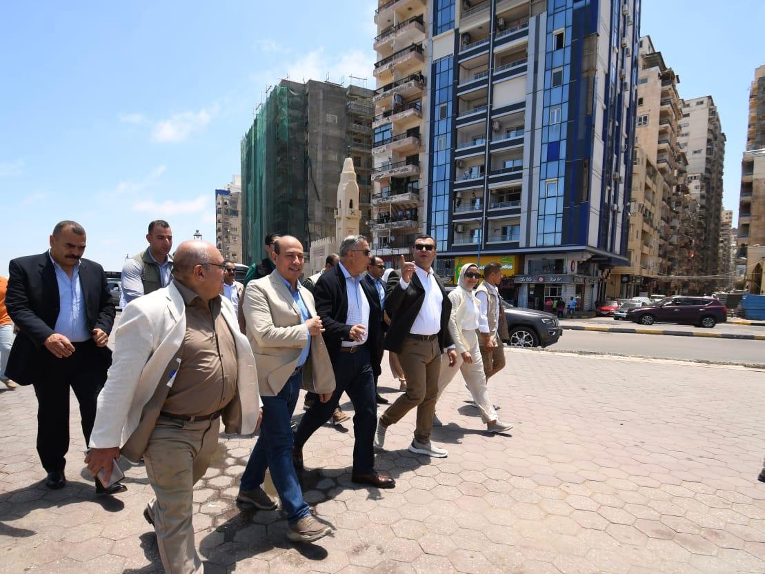 تفقد المهندس شريف الشربيني، وزير الإسكان والمرافق والمجتمعات العمرانية، والفريق أحمد خالد حسن سعيد، محافظ الإسكندرية، مشروع توسعة وتطوير كورنيش الإسكندرية من المنتزه إلى فندق المحروسة بطول (5) كم شاملا اعمالا صناعية"انفاقا وكوبرى"، ليصبح الكورنيش بعرض 5 حارات مرورية بكل اتجاه، وكذا مشروع ترميم واجهات بعض العقارات بالكورنيش، يرافقهما مسئولو وزارة الإسكان والمحافظة، ورئيس الجهاز المركزي للتعمير.