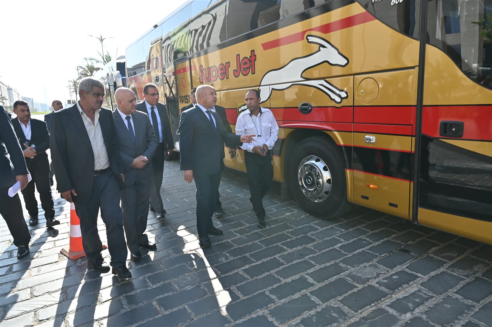 في اطار خطة وزارة النقل لدعم اسطول الاتوبيسات بالشركات التابعة باحدث أنواع الحافلات لتعظيم دور منظومة النقل الجماعي البري في تقديم أعلى مستويات الخدمة لجمهور الركاب و بما يساهم في مواكبة خطط الدولة التنموية في المحافظات المختلفة وفي ضوء تنفيذ وزارة النقل لخطة شاملة لتطوير اسطول شركة الاتحاد العربي للنقل البري "سوبر جيت" احدى شركات الوزارة.