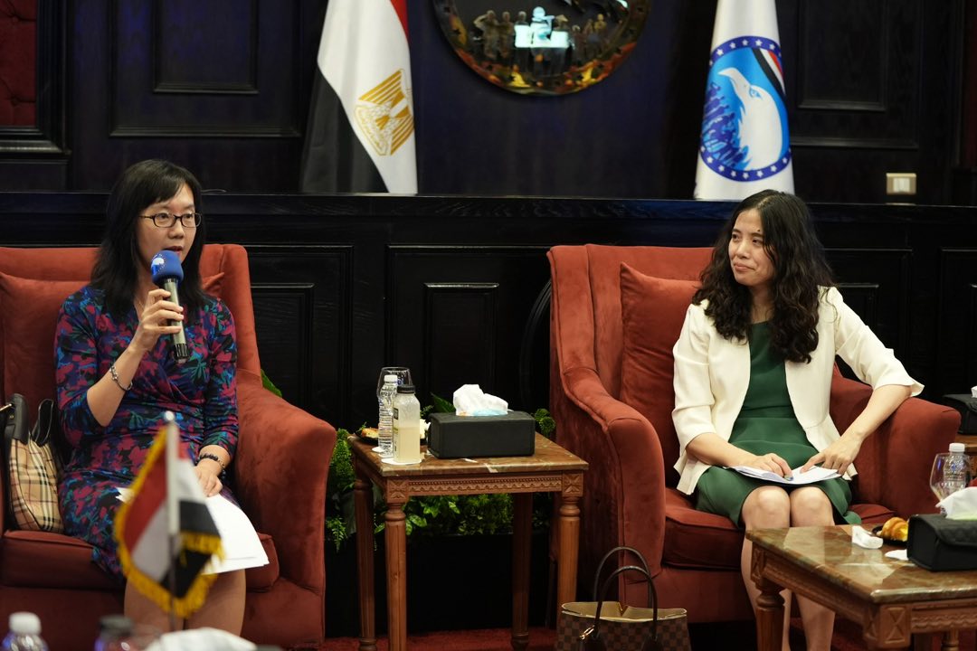 وضم وفد السفارة الصينية بالقاهرة، السيدة Wang Zijuan، الوزيرة المستشارة للعلاقات مع الأحزاب السياسية المصرية، والسيدة Lu Chenxi المستشارة للشؤون البرلمانية.