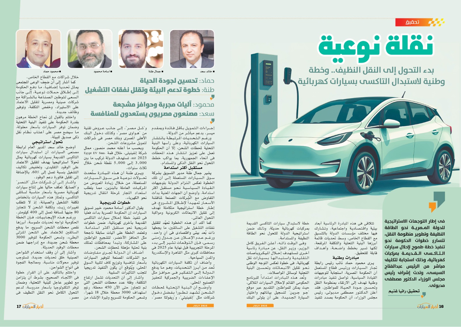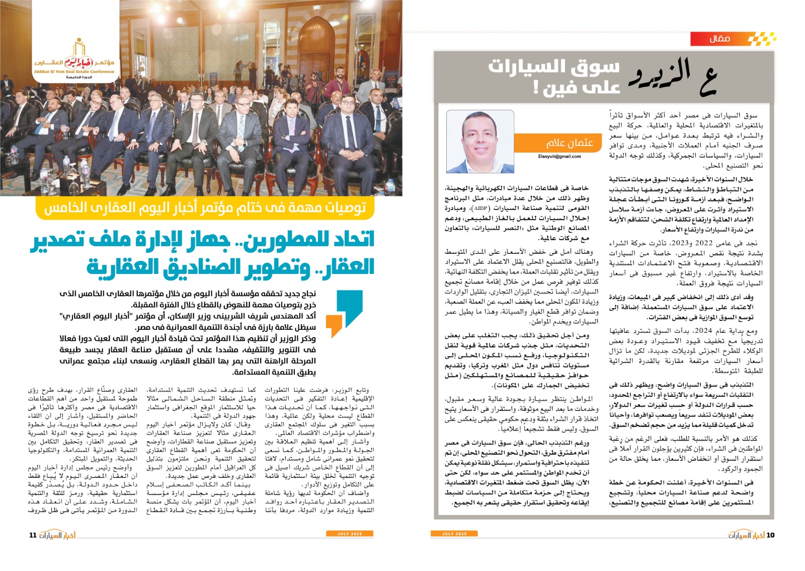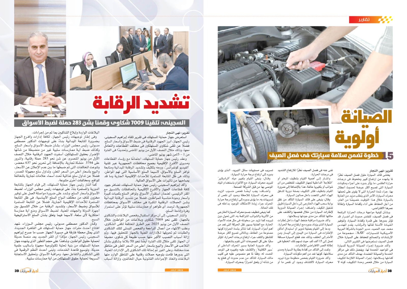 كما ضم العدد تقارير مشوقة منها N°8 الكهربائية.. بقوة 350 حصان، ÆMotion.. مستوحاة من سايبرتراك، فيراري F40.. معدلة بلمسات استثنائية، شيفرولية كورفيت ZR1X.. خارقة بكل المقاييس، توصيات مهمة في ختام مؤتمر أخبار اليوم العقاري، كيا PV5 Passenger.. الخيار الأفضل للعائلات، بدء التحول إلى النقل النظيف وخطة وطنية لاستبدال التاكسي بسيارات كهربائية، تصنيع قطع غيار السيارات بتقنيات الطباعة ثلاثية الأبعاد والماكينات الرقمية، نيسان Z9.. تصميم قوي وتقنيات متقدمة، أوان التصنيع، Galaxy A7 من جيلي.. فخامة لأبعد الحدود، تأثير تحت السيطرة.. تداعيات محدودة لحرب إسرائيل وإيران، 15 خطوة تضمن سلامة سيارتك في فصل الصيف، كما يحتوي العدد على حوار مع علاء حواش، المدير التنفيذي لشركة HERU، وكتب الكاتب الصحفي وليد عبدالعزيز مقالا بعنوان "فيها حاجات حلوة"، كما كتب الكاتب الصحفي عثمان علام مقالا بعنوان "سوق السيارات على فين".