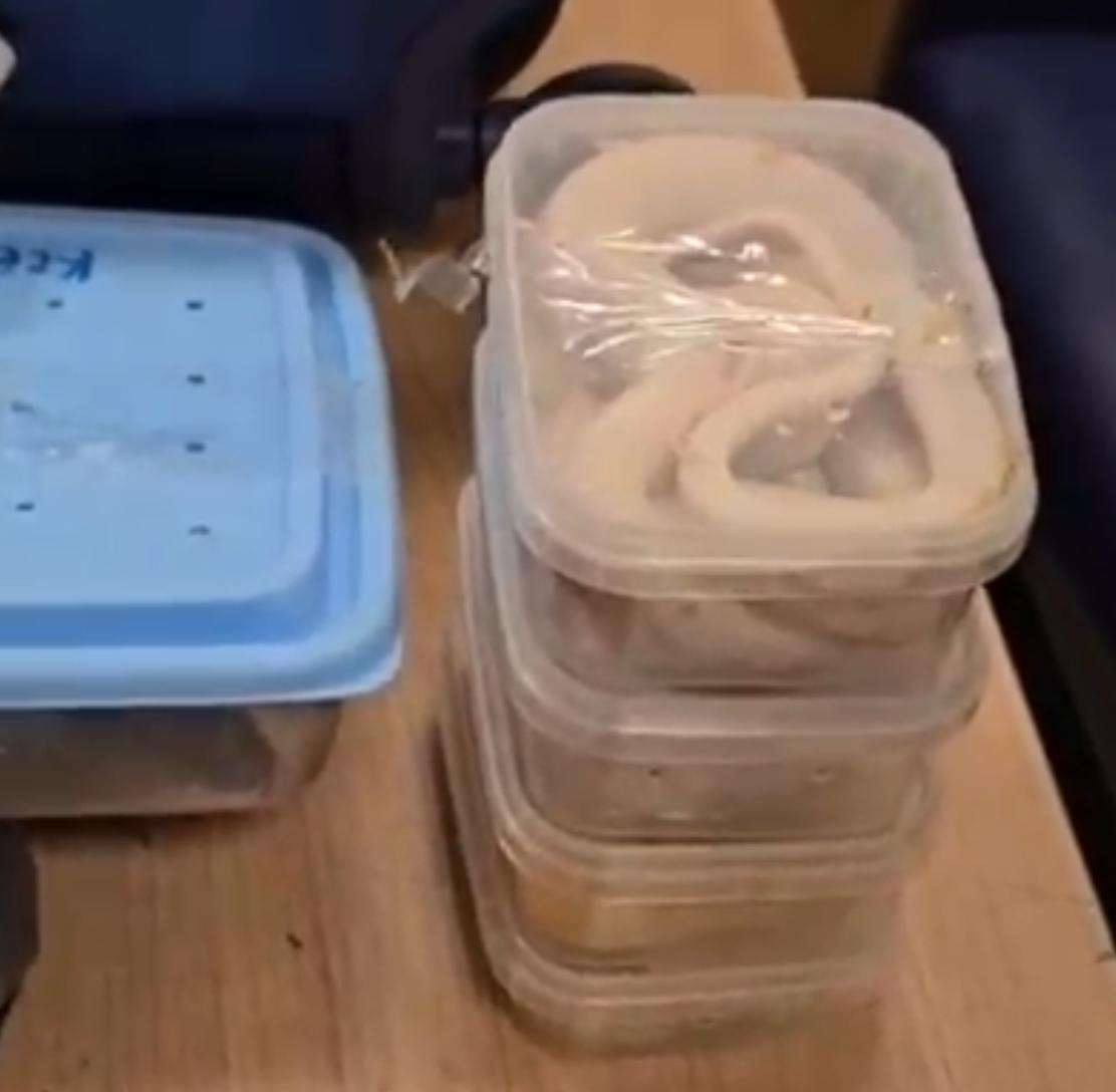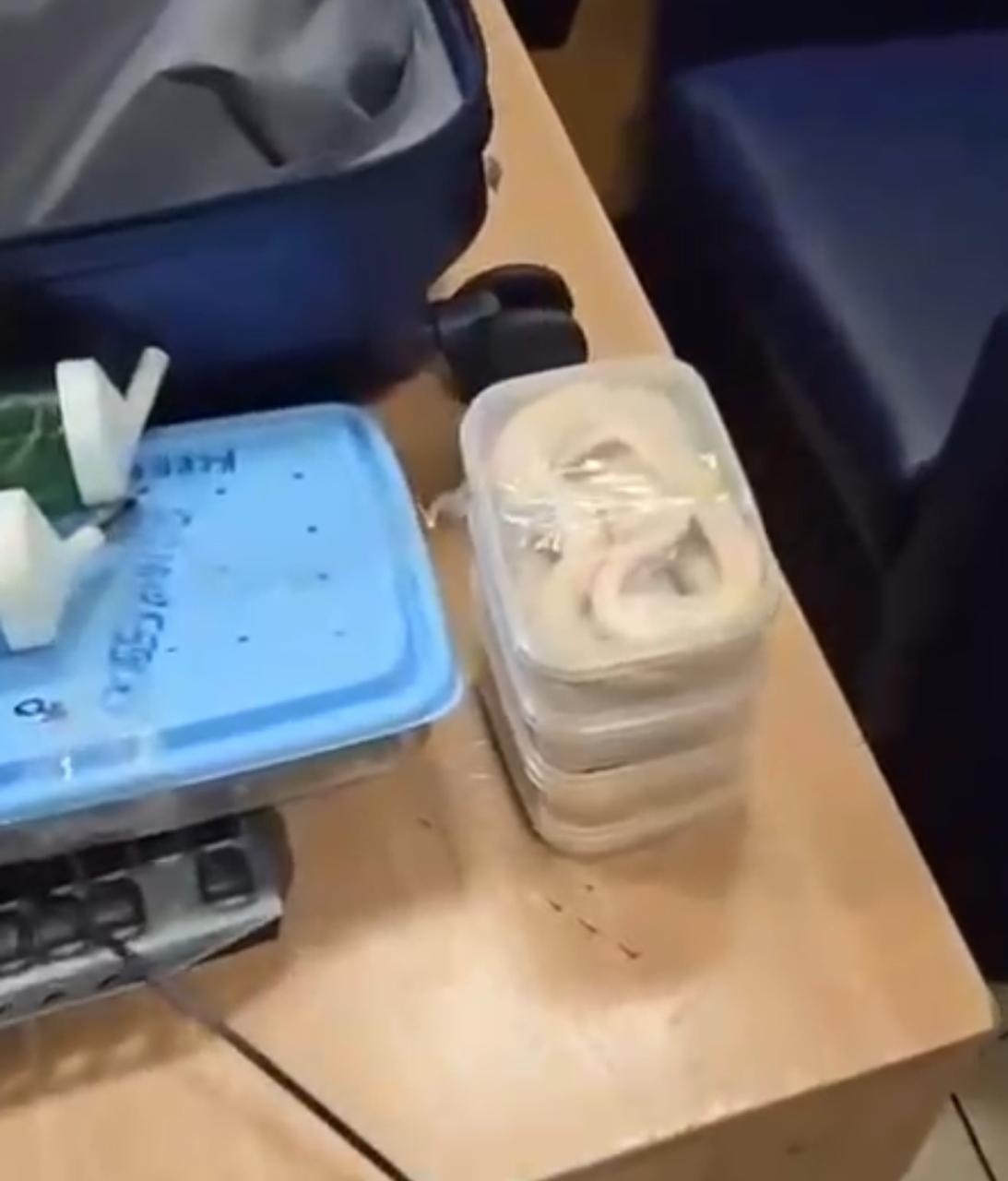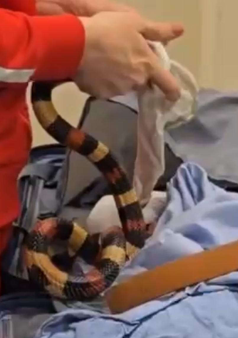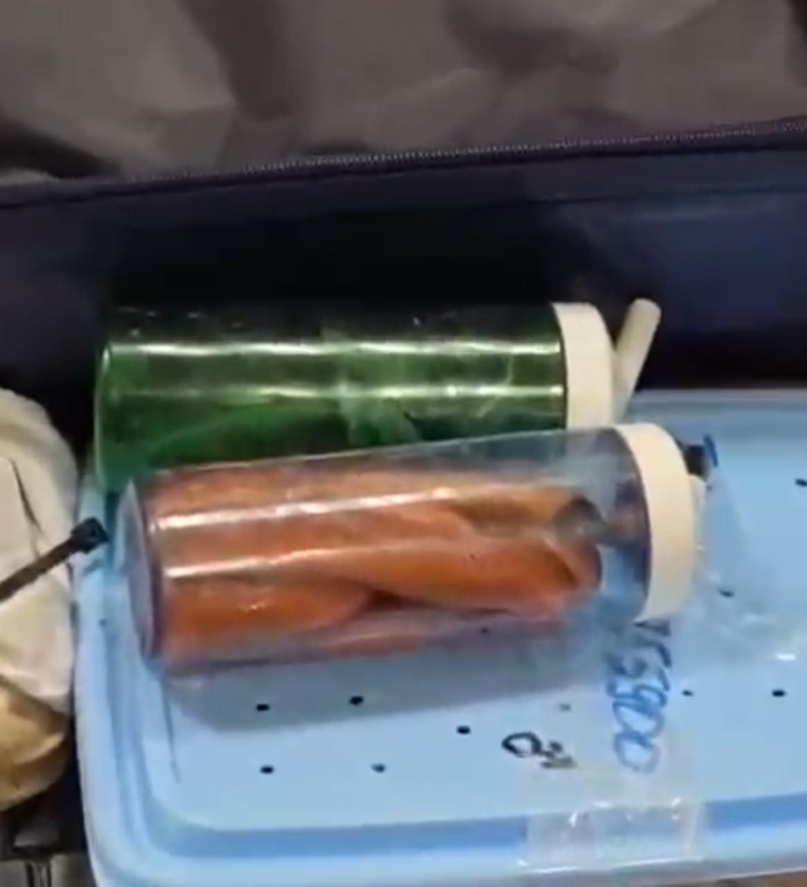 ففي اثناء انهاء الإجراءات الجمركية علي ركاب رحلة الخطوط الروسية (ايروفلوت) استوقف رئيس القسم المعين علي لجنة الخط الأخضر احد الركاب اثناء محاولته الخروج من بوابة اللجنة الجمركية، والذي انكر حوزته لما يجب الإفصاح عنه، وبتفتيش حقائب الراكب علي جهاز الفحص بالأشعة تلاحظ وجود كثافات عضوية داخل حقائب الراكب وبتفتيش حقائب الراكب يدويا عثر علي ثعابين وعقارب داخل الحقائب.