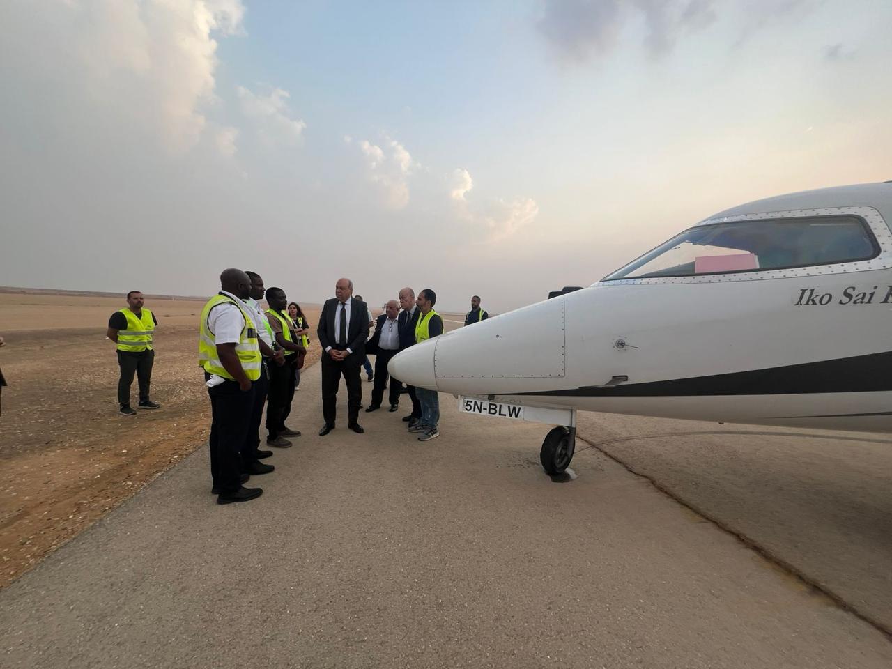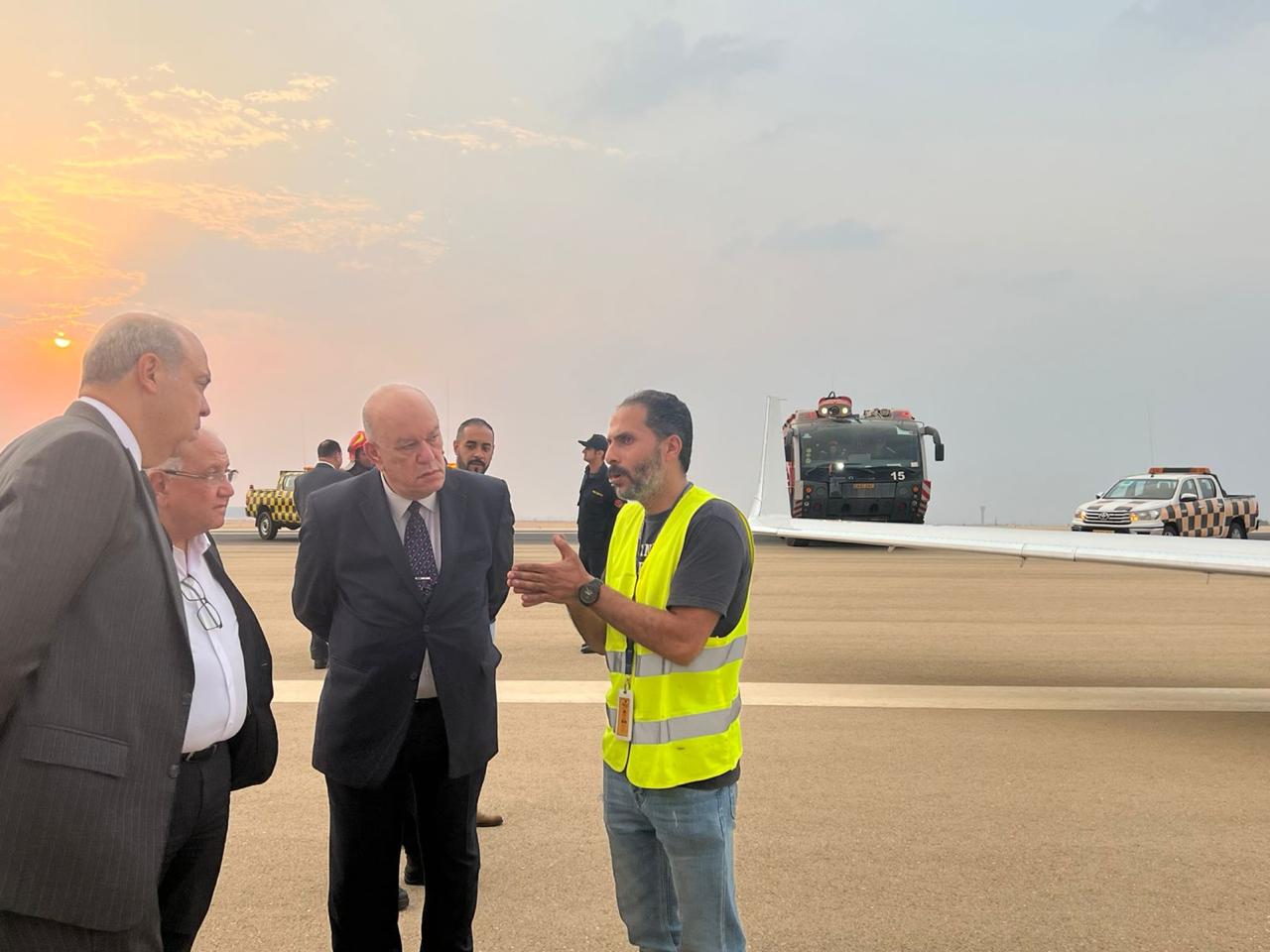 وزير الطيران يشهد هبوط اضطراري لطائرة خاصة أجنبية بمطار القاهرة