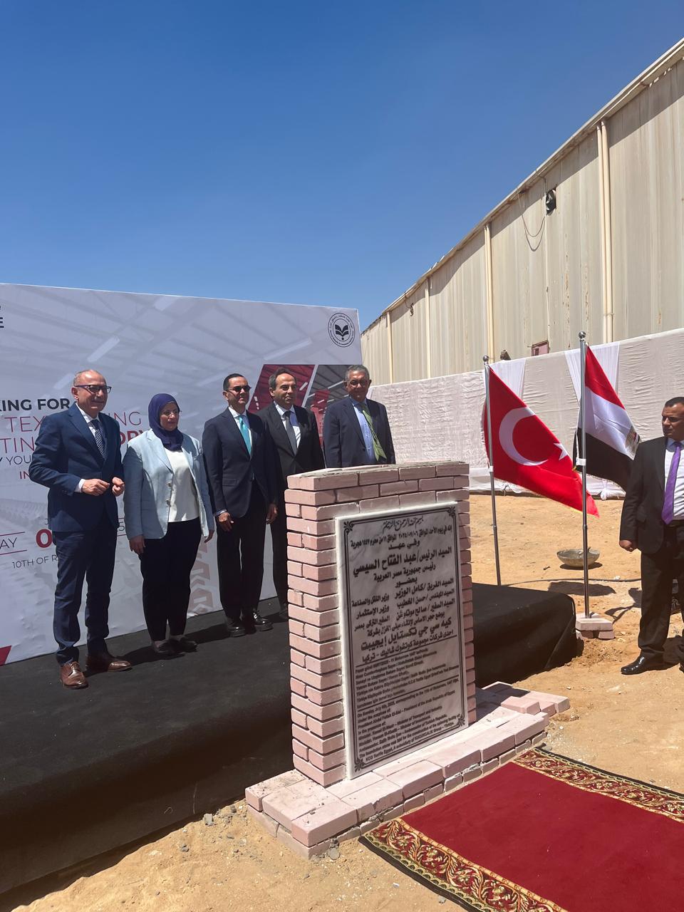 شهدت المنطقة الصناعية بالعاشر من رمضان، اليوم الأحد، وضع حجر الأساس لمصنع جديد في قطاع النسيج باستثمارات تبلغ 24 مليون دولار، وذلك بحضور وزير التجارة الخارجية والاستثمار حسن الخطيب، ورئيس الهيئة العامة للاستثمار والمناطق الحرة حسام هيبة، والسفير التركي بالقاهرة صالح موطلو شن، إلى جانب عدد من كبار المستثمرين والمسؤولين التنفيذيين.