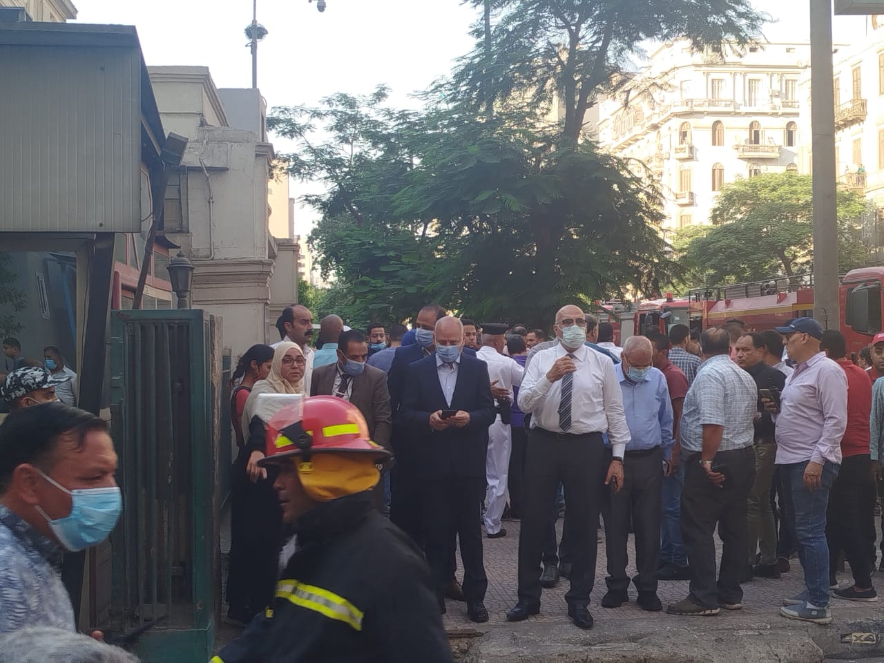 يشرف د. إبراهيم صابر محافظ القاهرة على عمليات إطفاء الحريق الذى نشب في مبنى سنترال رمسيس بشارع رمسيس بحي الأزبكية.