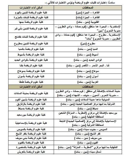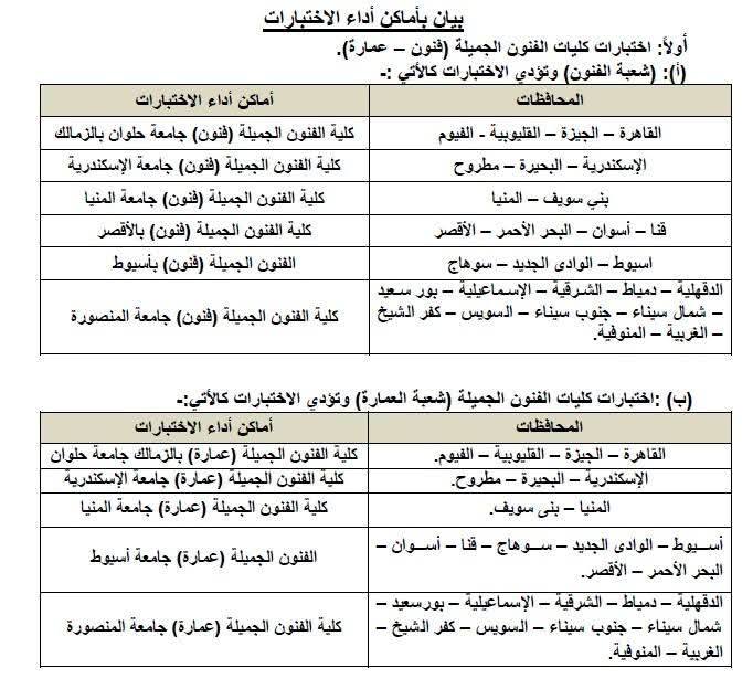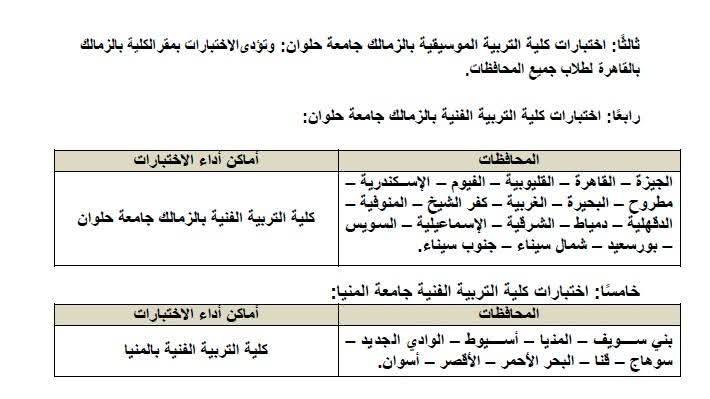 مواعيد وأماكن أداء اختبارات القدرات بالكليات المحددة.