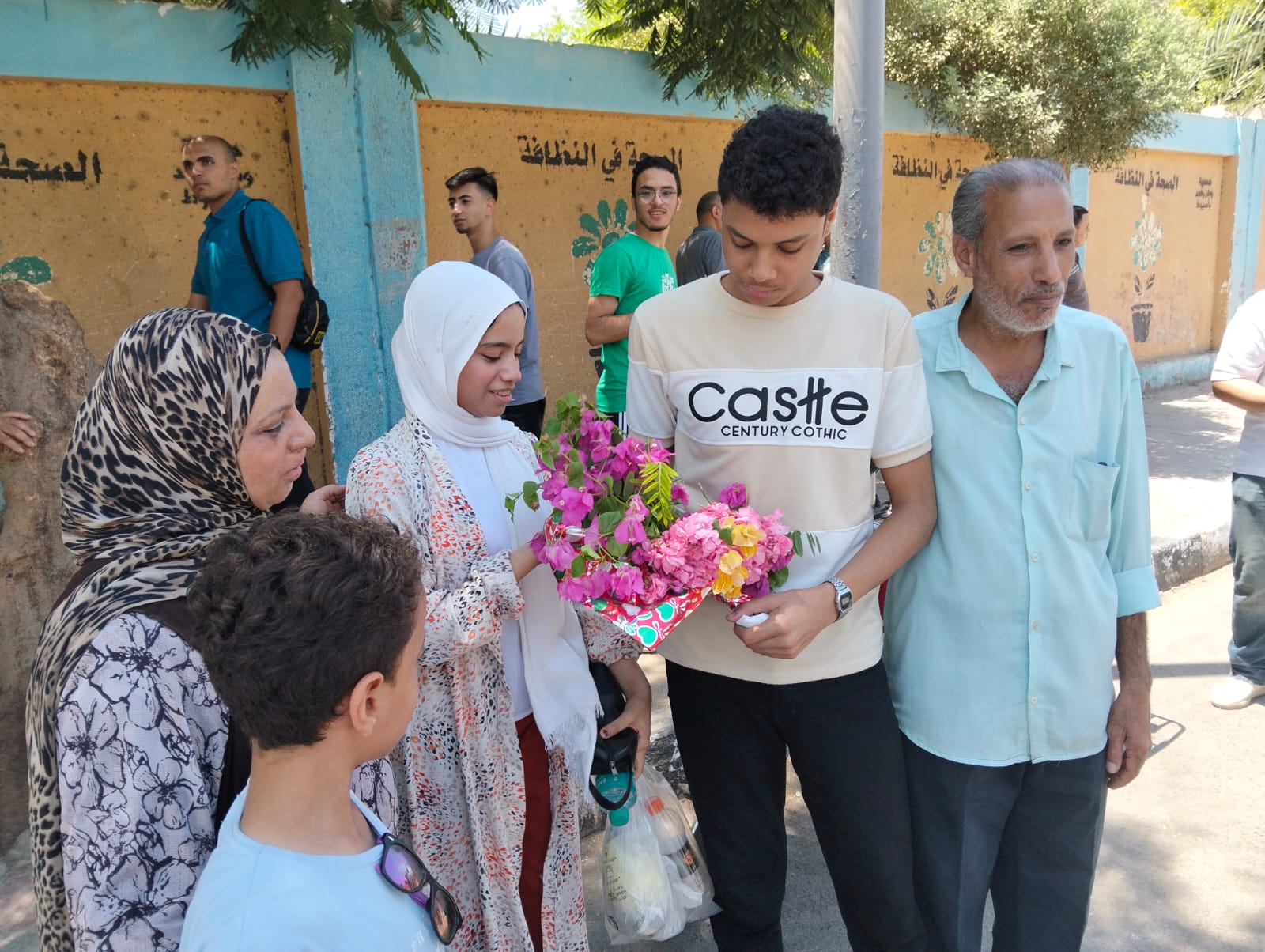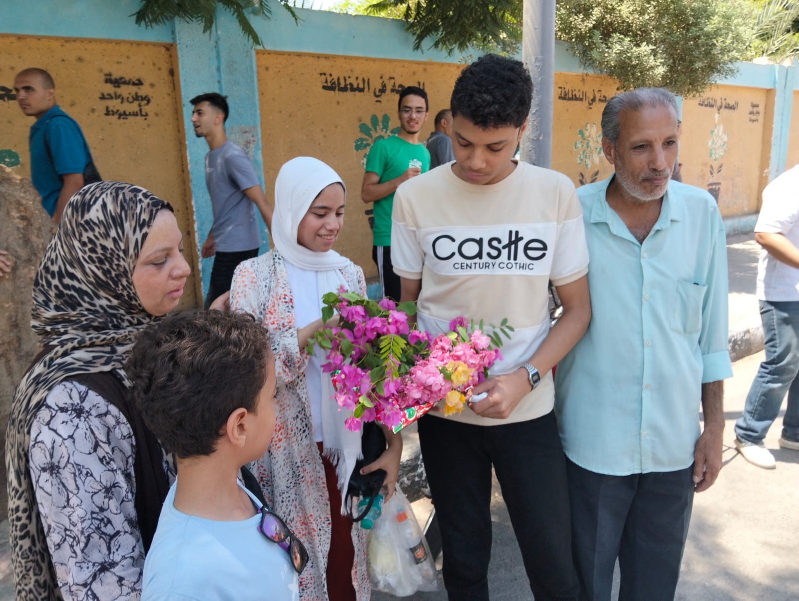 وعقب انتهاء الامتحانات، استقبلت أسرة الطالب يوسف حمادة ابنهم أمام لجنة مدرسة الانتصار بالورود، احتفالًا بانتهاء ماراثون الثانوية العامة لهذا العام.