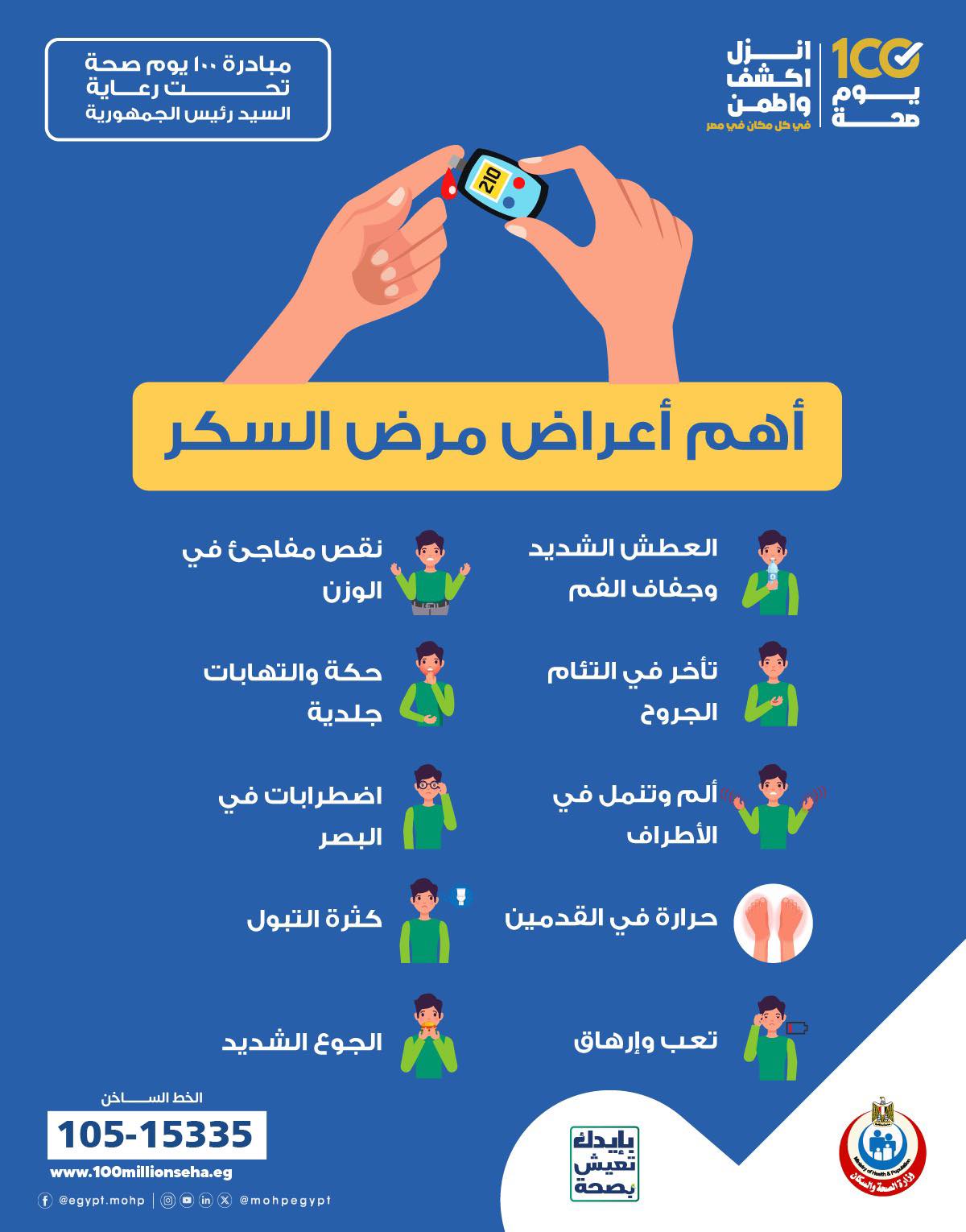 وزارة الصحة تكشف 10 أعراض لمرض السكري.. إنفوجراف
