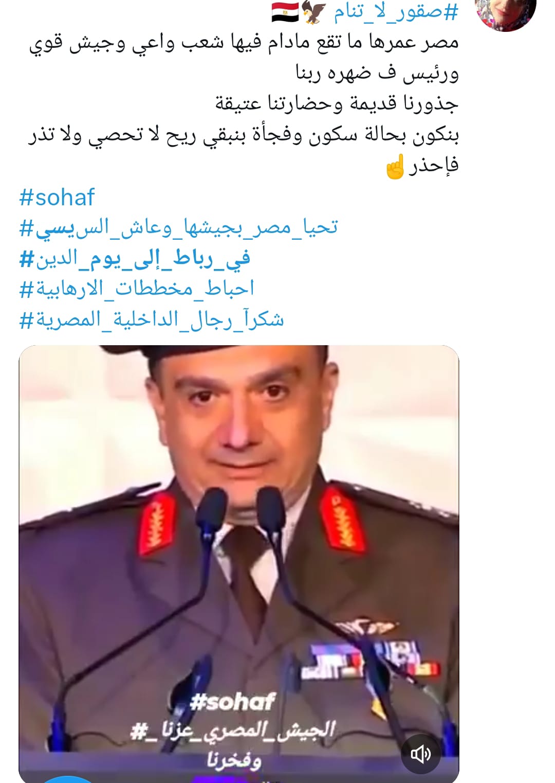 جذورنا قديمة وحضارتنا عتيقة.. بنكون بحالة سكون وفجأة بنبقي ريح لا تحصي ولا تذر.. فإحذر #تحيا_مصر_بجيشها_وعاش_السيسي #في_رباط_إلى_يوم_الدين #شكرآ_رجال_الداخلية_المصرية".