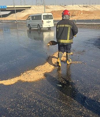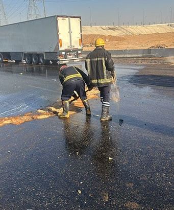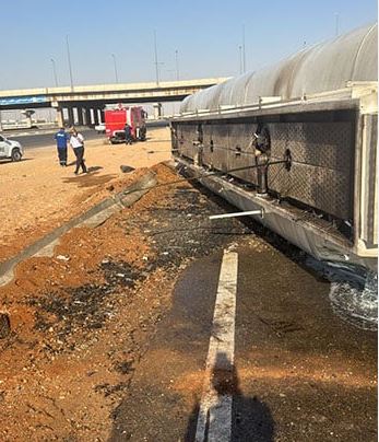انقلبت سيارة نقل فنطاس محملة بـ 35 طن من المواد البترولية " الجاز" بطريق السويس الصحراوي وانتقل رجال الحماية المدنية الى موقع الحادث ليتم إزالة وتنظيف المكان من الجاز منعا لوقوع أي حوادث مرورية وحفاظًا على أرواح المواطنين.