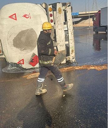 ورد بلاغ يفيد بانقلاب سيارة فنطاس محملة بالجاز طريق السويس السريع أسفل الطريق الإقليمي اتجاه السويس نطاق مدينة بدر وبناء على تعليمات اللواء الدكتور محمد الشربيني مدير الإدارة العامة للحماية المدنية بالقاهرة تم توجيه 3 سيارات إنقاذ وفريق مختص ليتم التعامل مع البلاغ.